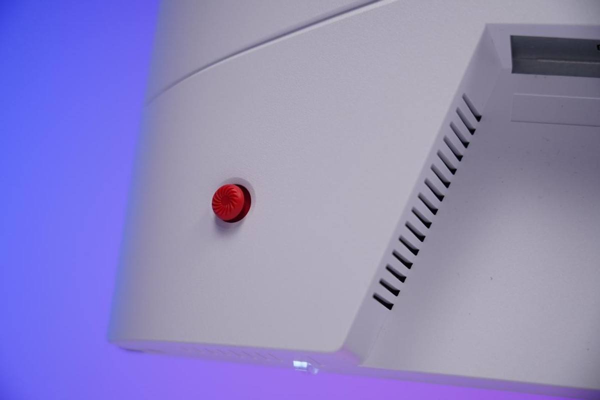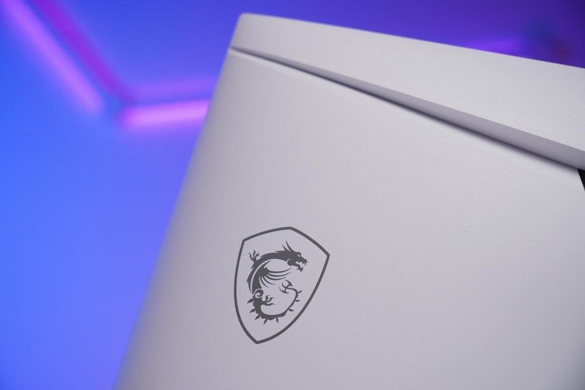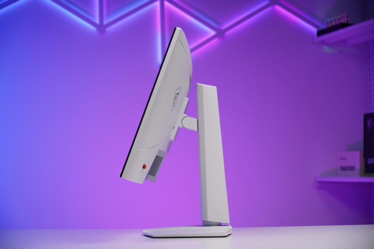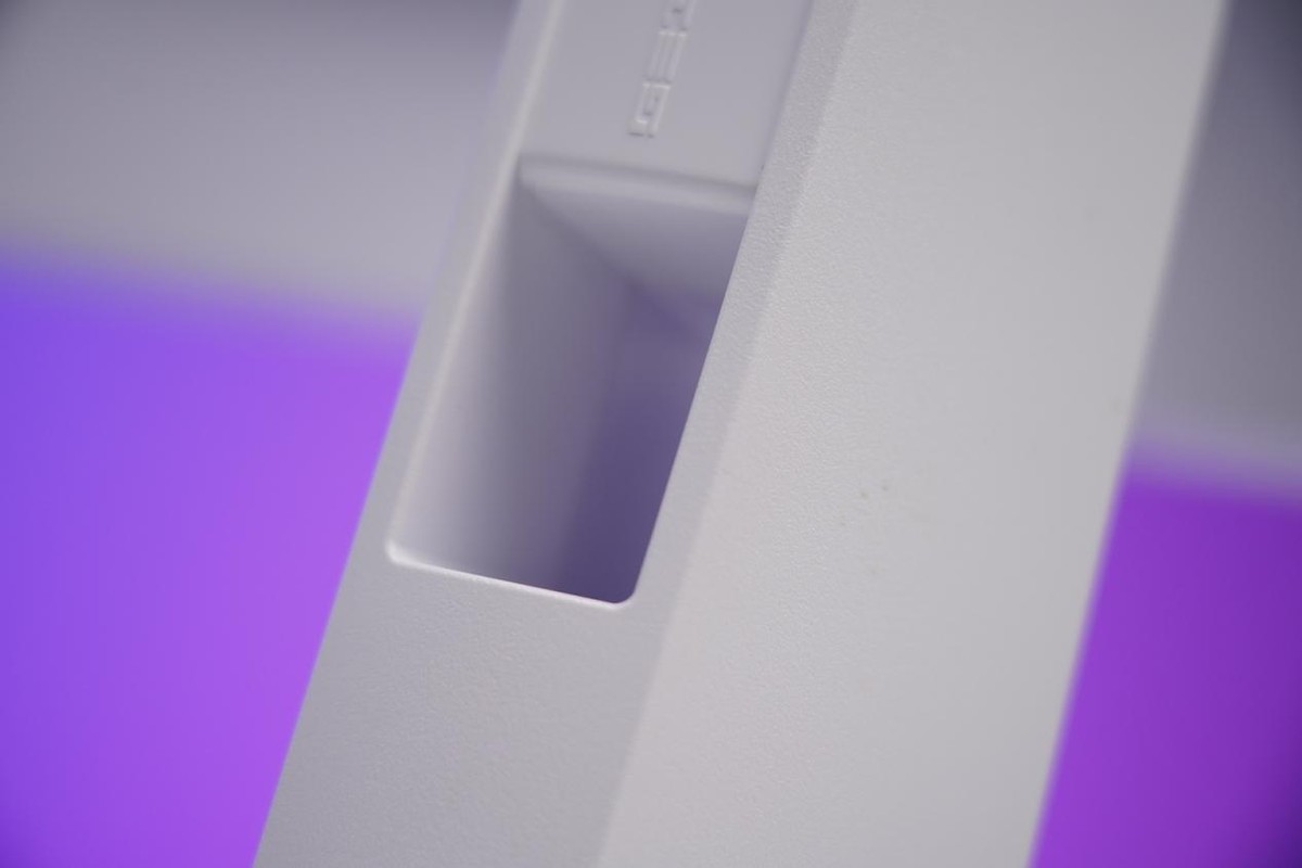 背部白色机甲风的和微星其他款显示器都很接近,不规则几何方块拼接+电竞氛围灯。