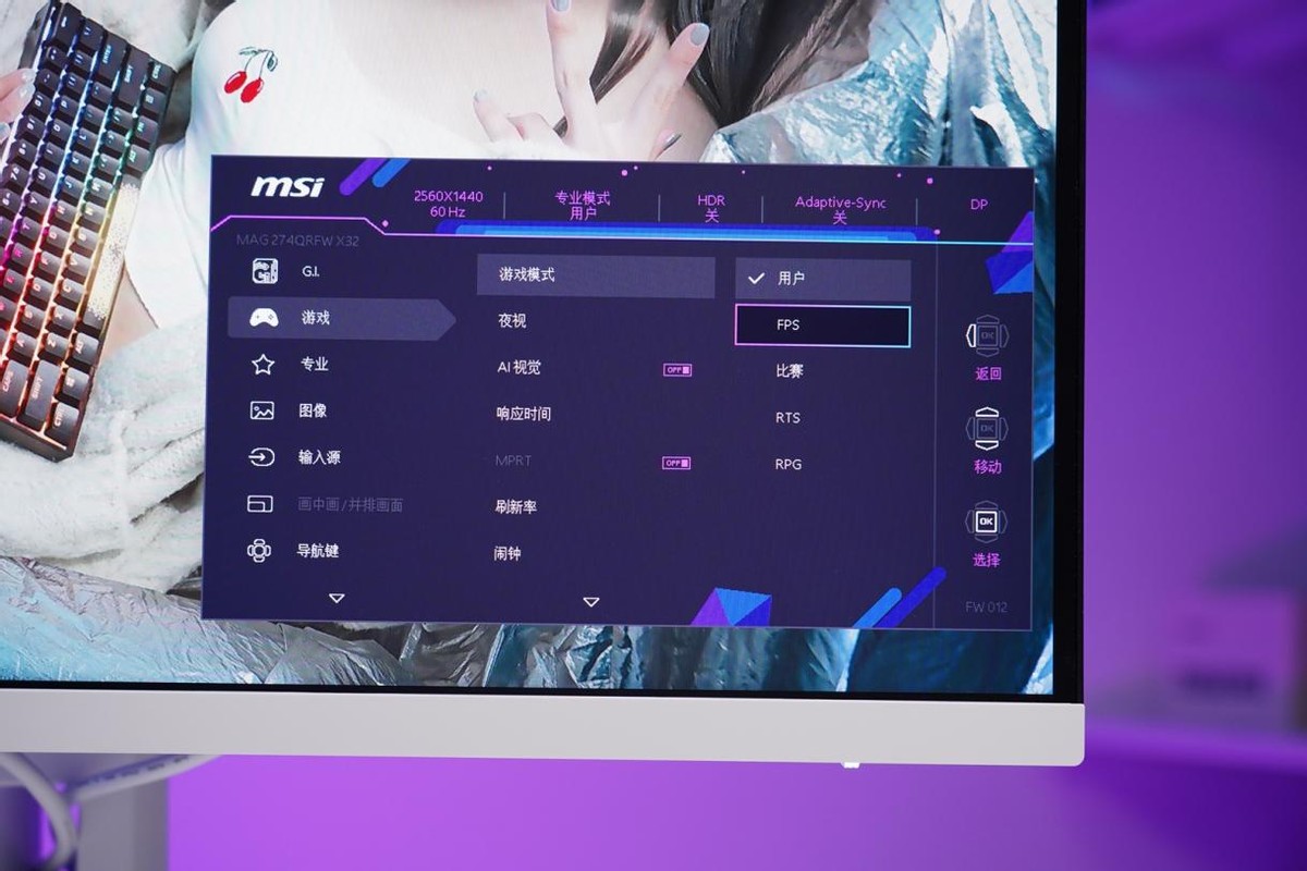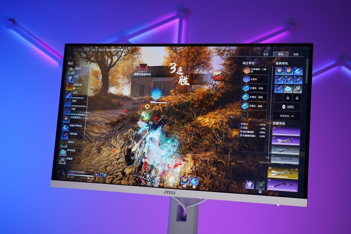 MAG 274QRFW X32 的硬件参数在千元电竞显示器里也是基本拉满性能属性,首先是屏幕分辨率:27 英寸 Rapid IPS 面板是2560×1440(WQHD)分辨率的黄金搭配,16:9 aspect ratio应付日常使用是完全足够的。320Hz 超高刷新率 + 0.5ms(GtG,Min.)响应时间,主要是针对快速移动的游戏场景如 FPS游戏中,能大幅度降低拖影和图形模糊。还有在游戏场景里的色彩表现上也是不输于市面同类型显示器产品的,暗部可以通过AI来调控亮度,高色域的色彩还原能最大限度的给予使用者最好的色调肉眼观感。