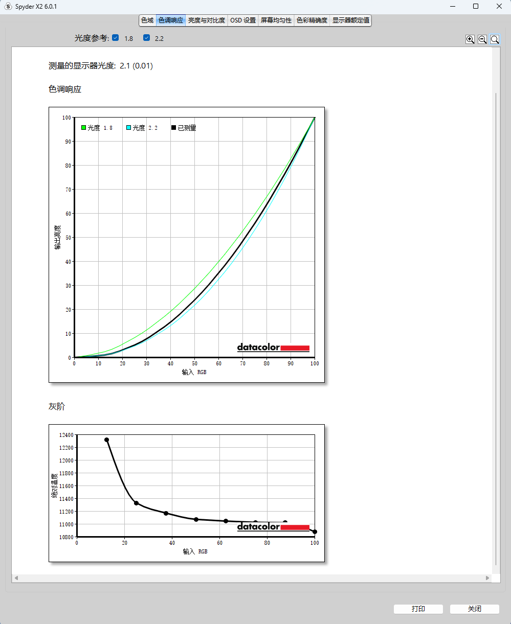 色调响应:2.1光度曲线曲线紧贴标准值2.2。色调响应的表现可圈可点。灰阶方面,显示器在不同的亮度下表现出来数值浮动也还是在可接受范围内。