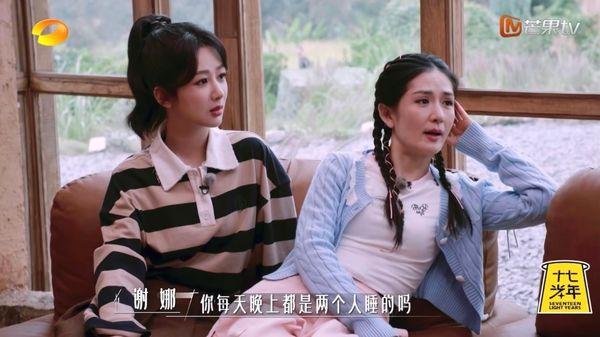 分配房间时,林心如脱口不敢自己睡,谢娜问「你每天晚上都是两个人睡的吗?」(图/翻摄自微博)