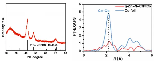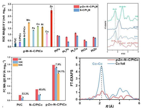 图7:N-C/PtCo和g-Zn-N-C/PtCo表征的示意图与g-Zn-N-C/PtCo的Zn K边R空间