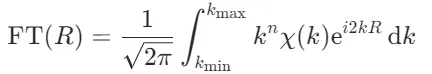 其中,k是波数(wave number);R是距离(radial distance);kn是权重因子(通常为k2或k3);χ(k)是EXAFS函数;ei2kR是相位因子;kmax和kmin是积分范围的上下限。