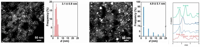 同步辐射R空间:通过Pt-Zn、Zn-N等配位峰,解释了STEM观察到的“分散性”背后的化学本质—正是原子间的强相互作用阻止了颗粒聚集。