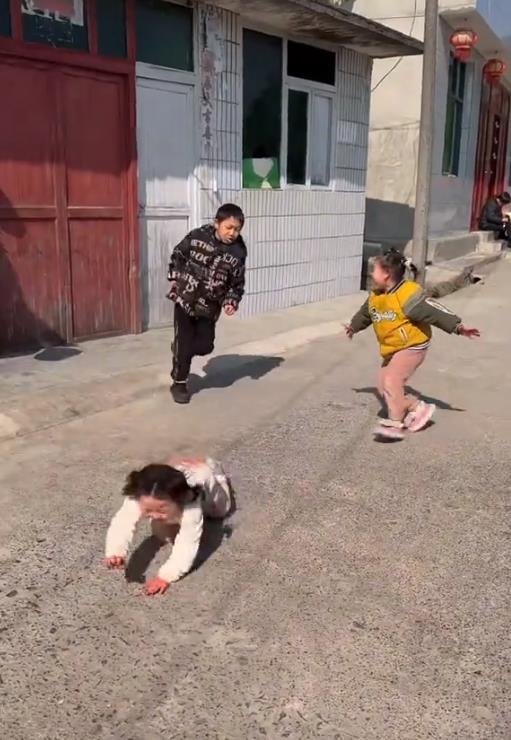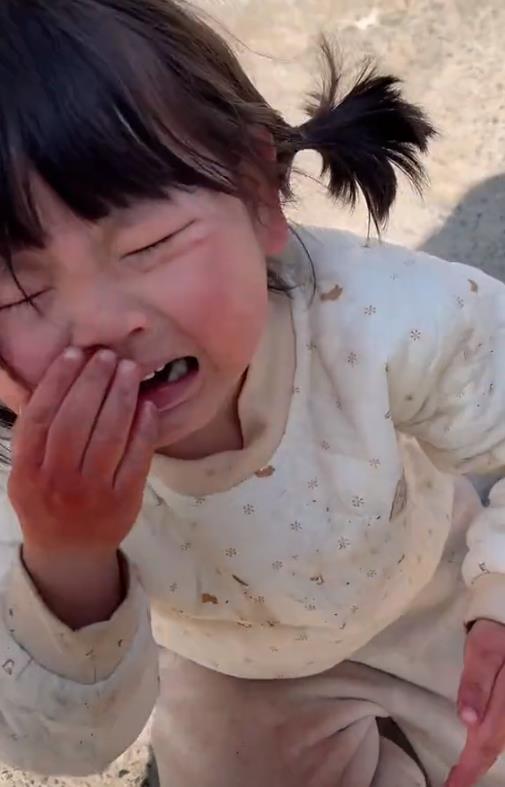 她和伙伴玩游戏,跑着跑着突然绊倒摔了个脸朝地,看着就疼,这次她妈终于担心了,赶紧跑过去扶她,但还是没放弃拍视频,瑶一瑶哇哇大哭,看来真摔疼了。
