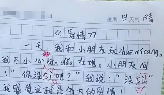 小学生的“爱情”——日记里的错误理解但日记中偶尔也会出现一些让人哭笑不得的内容。比如有一名小学生在日记里提到了“爱情”,而且她写的是关于和朋友一起玩的事情。