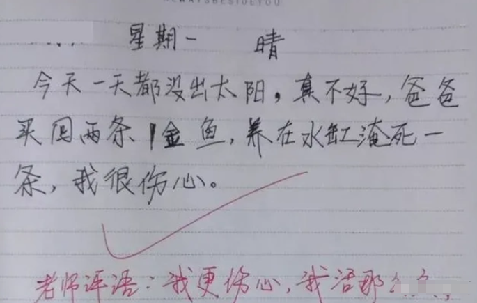 小学生的日记里藏着“秘密”比如有一位小学生写道,自己非常伤心,因为家里的一条金鱼死了。