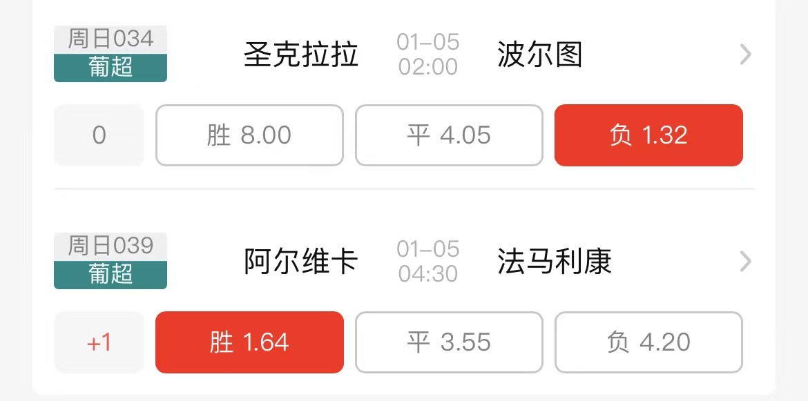 波尔图本赛季发挥出色,目前已取得15胜1平的豪华战绩,他们的客场更是连续8场取胜。但他们与第二名的积分差距仍然不大,里斯本竞技目前以13胜3平1负积42分位列积分榜第二位,仅落后波尔图4分。波尔图近期赛程并不密集且没有重要球员缺席,在面对弱旅时,理应再取三分。同时圣克拉拉头号射手塞尔吉尼奥停赛,主力后卫利马和主力中场菲尔米诺都处于出战成疑的状态,这对他们的实力有一定削弱。