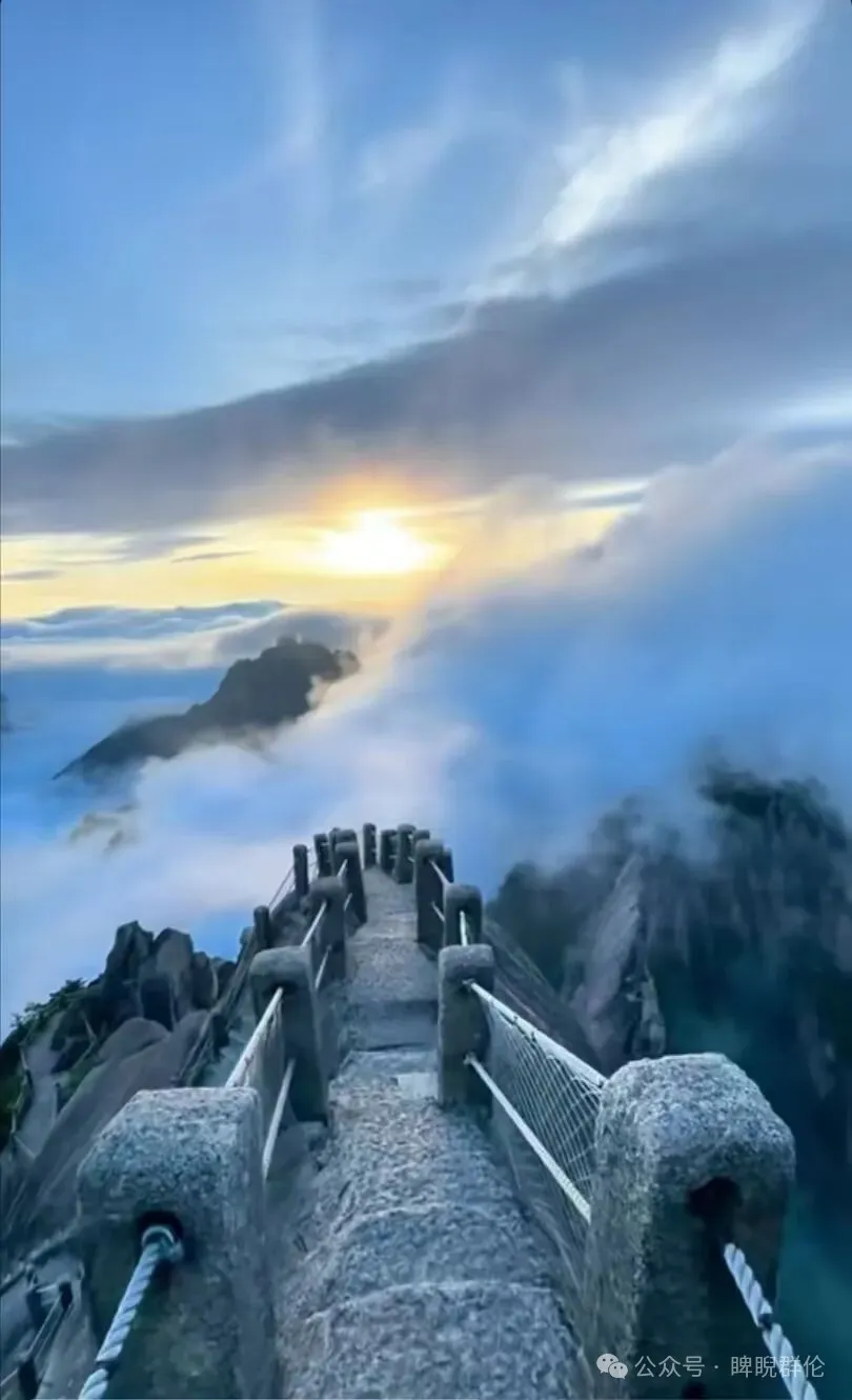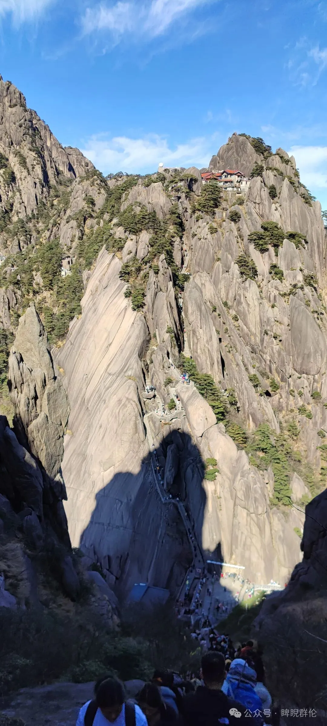 一路途经月牙亭、朱砂峰、立马桥、半山寺,台阶是越来越陡,空气是越来越稀薄,可眼睛却是越来越亮。当远处的山被云遮雾绕,当奇松以千年姿态傲立绝壁,当群山在晨光中次第醒来,我才懂得什么是“登黄山天下无山”。那不只是风景的壮丽,更是自然对渺小人类最温柔的震撼。