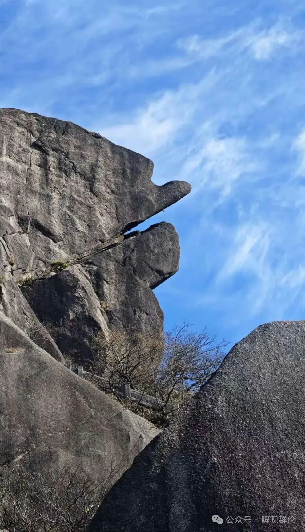 至鳌鱼峰,眼前的“鳌鱼驮金龟”很是形象生动,在此不得不感叹大自然的鬼斧神工,竟真能做到如此的惟妙惟肖。形似巨鲸背负金龟,被誉为“黄山三十六小峰之首”。鳌在中国传统文化中象征状元及第(独占鳌头),而龟代表长寿,因此“鳌鱼驮金龟”被赋予了“金榜题名,长寿安康”的双重吉祥寓意。