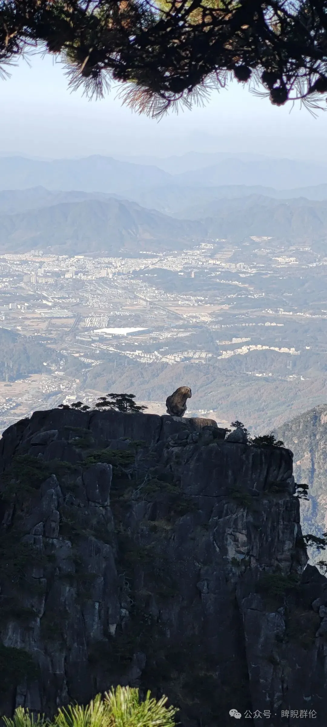 午后约三点,来到了狮子峰,远眺猴子观海,形态酷似一只蹲坐于主峰之巅的猴子,双臂抱膝,凝神远眺,每当有云海出现时,石猴似置身于翻腾的云浪之上,静观其起伏变化。