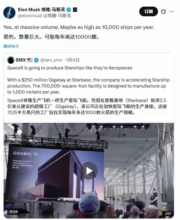 规模化生产线的搭建,是千枚量产目标落地的关键支撑。SpaceX已建成超大型星舰制造车间,通过模块化组装与自动化生产线,将单枚星舰制造周期压缩至数天,日均量产约2.7枚的效率,远超传统航天企业数年一枚的产能水平。这种工业化生产模式,彻底颠覆了航天领域的传统制造逻辑。