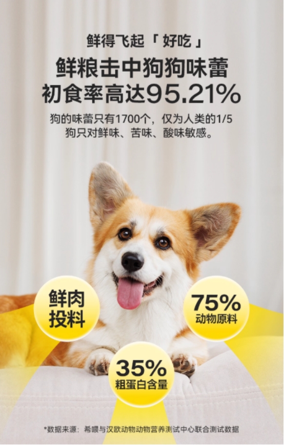 希喂与汉欧大厂合作,其生产环境达到GMP婴儿奶粉级别的无菌标准。品控体系涵盖200多道工序与1000项检测,每一环节都有专人实时监控,各批次的检测报告,原料供应信息也都公开透明,品控方面值得信赖。与双汇、中粮的原料农场合作,直供达到人类食用标准的鲜鸡肉,承诺无化学残留,并实现当日屠宰与配送,从源头保障食材的绝对新鲜与营养完整,狗狗能吃到最“鲜”的自然风味。