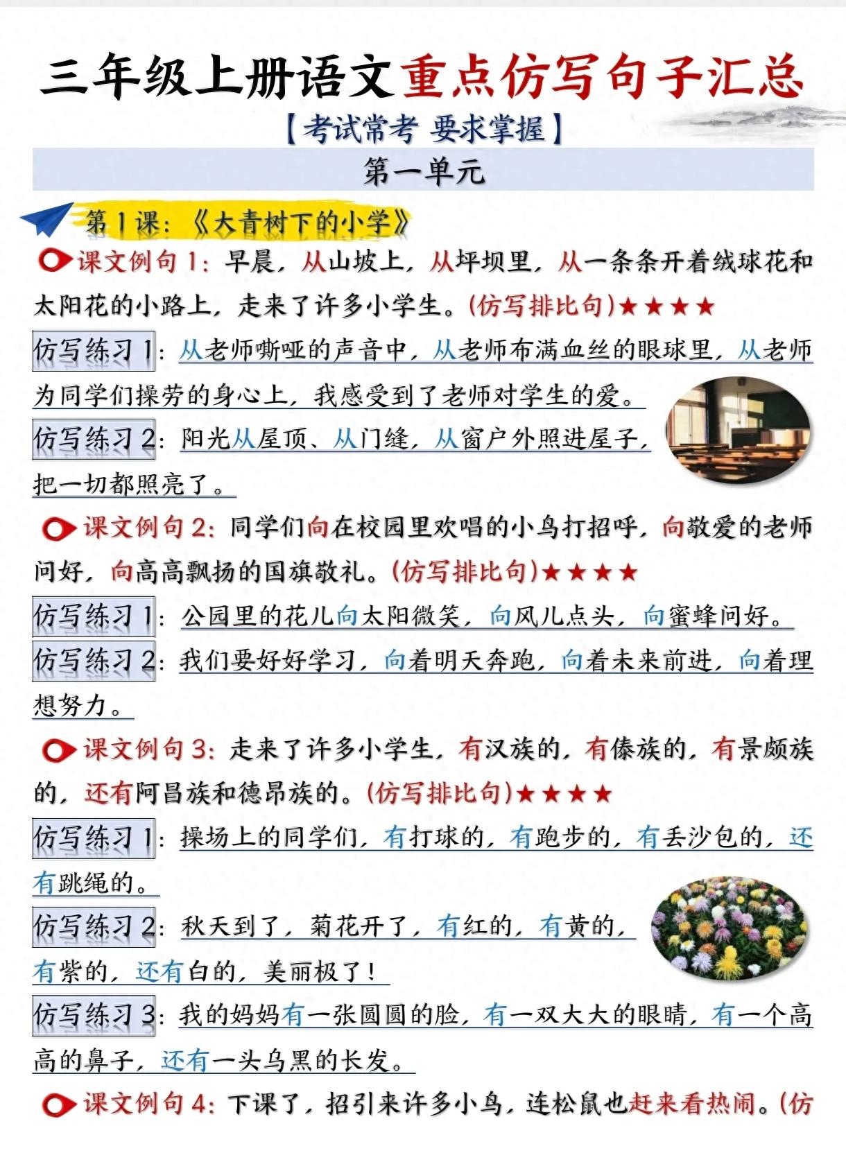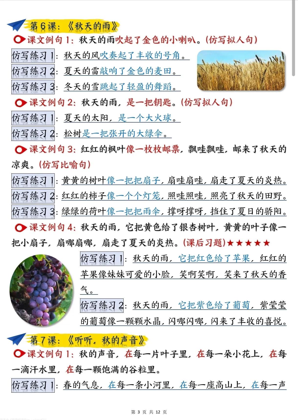 三年级上册语文重点仿写句子汇总