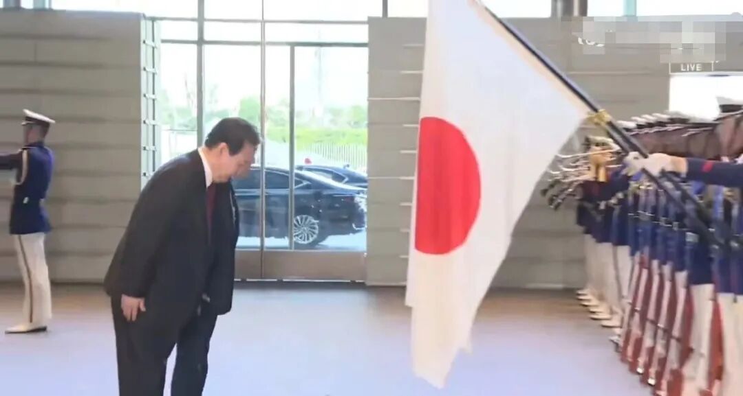 这一幕与韩国前总统尹锡悦访日时对日本国旗恭恭敬敬的鞠躬敬礼相比,反差实在是太大了。