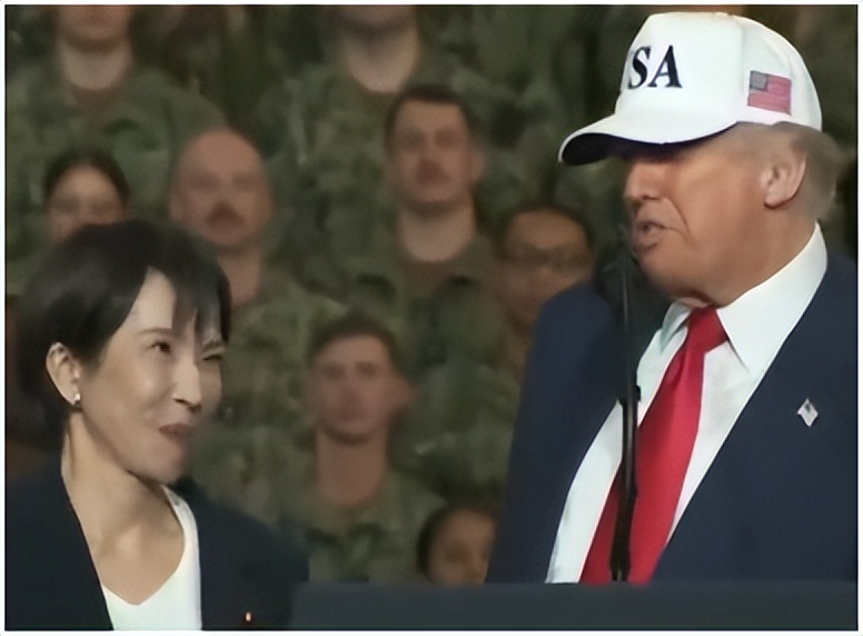 比如在特朗普演讲期间,高市早苗就紧紧依偎在特朗普身边,不时的用类似于崇拜的眼神、求爱的表情仰望着特朗普。