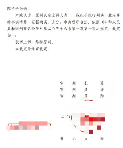 2023年,定远县人民检察院就同一事实对青先生提起公诉。2024年4月,定远县人民法院一审认定青先生系国鸿公司实际控制人,通过更换法人、无偿转让股份等方式转移财产致判决无法执行,以拒执罪判处其有期徒刑一年十个月。青先生不服判决提起上诉,滁州市中院2024年8月终审裁定驳回上诉、维持原判,认为原审事实清楚、证据充分。青先生认为原审存在法条适用争议,据此提出申诉并获立案。
