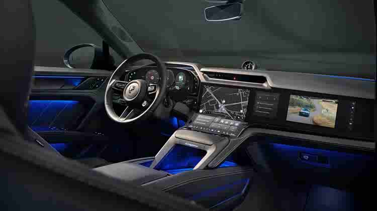 14.25英寸全液晶仪表盘清晰呈现驾驶数据,虽然尺寸不如我们新能源车动辄就上15.6或者更大尺寸的屏幕,但结合HUD抬头显示系统,可以将关键信息投射在前挡风玻璃上,客户可选装的 14.9 英寸娱乐副屏,可以让乘客享受影音娱乐;车机系统基于保时捷定制化 Android Automotive OS 打造,极简风格的界面搭配动态动画,操作流畅度大幅提升。在视觉设计上保时捷这次采用了Unreal Engine虚幻引擎来渲染的车内动画,可直观展示全方位展示车辆状态并控制各项功能,也可以支持车内游戏。流程度堪比特斯拉与国产新势力的的交互水准。