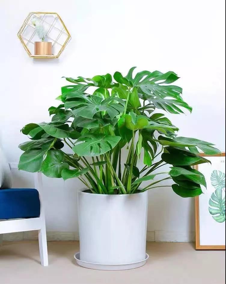 龟背竹寓意健康长寿,是很受欢迎的观叶植物 龟背竹寓意健康长寿,是很受欢迎的室内大型观叶植物。 它株形奇特,茎节粗壮如罗汉竹,孔裂纹状的叶子酷似龟背 叶色碧绿光亮,四季常青,极富韵味,观赏价值极高 并且它还具有超强的净化空气的能力,可吸附空气中的二氧化碳、甲醛、苯等有害物质 改善室内空气质量,宽大的叶子可调节室内空气湿度 并且它还能在夜晚吸收二氧化碳、释放氧气,是理想的健康绿植 客厅养上几盆,清雅悦目,别具一格,还能添福添寿、旺运增吉,有益于人体健康。
