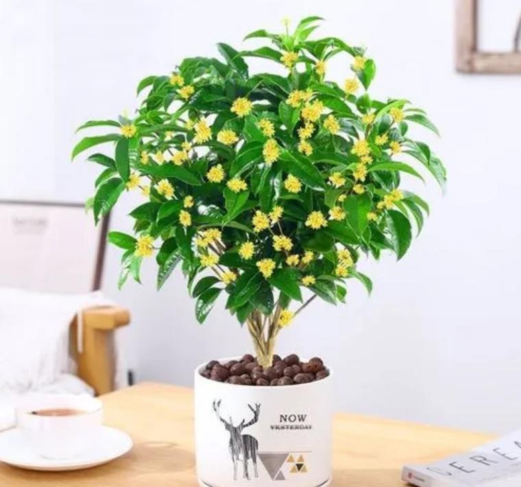 桂花树开花时清香扑鼻,令人神清气爽! 桂花是我国传统十大名花之一,它花姿清丽,香气怡人, 清可绝尘,浓能远溢,堪称一绝。 桂花品种繁多,终年常绿,枝繁叶茂,花开时清香扑鼻,令人神清气爽。 并且它对二氧化硫、氟化氢、氯气等有毒气体有一定的抗性,有抑菌杀菌、消炎止咳等效果, 在客厅、书房等地摆放一盆,典雅端庄,颇具韵味。 桂花适应性较强,喜温暖湿润的环境, 适宜的生长温度为15~28度,既耐高温也可耐寒,喜光也耐阴。 夏季需适当遮阴,避免长时间烈日暴晒; 可移至室内向阳处养护,适当控水保持盆土偏干。