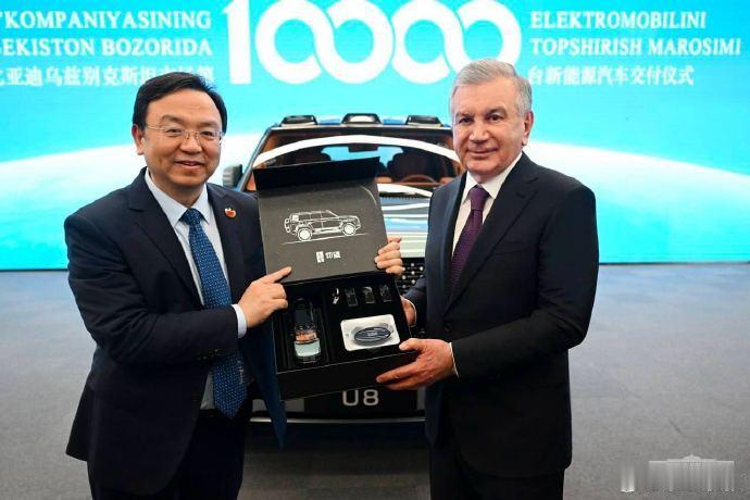 【比亚迪乌兹别克斯坦工厂投产】比亚迪位于乌兹别克斯坦的工厂在25日举办生产启动仪式,该工厂的首台整车产品——一辆宋Plus DM-i随之下线。一个有意思的小插曲是,与王传福共同连线见证生产启动仪式的乌兹别克斯坦总统在这一天也提到了一台#仰望U8# ,这正好也是比亚迪面向该国交付的第1万辆新车。#汽车资讯#