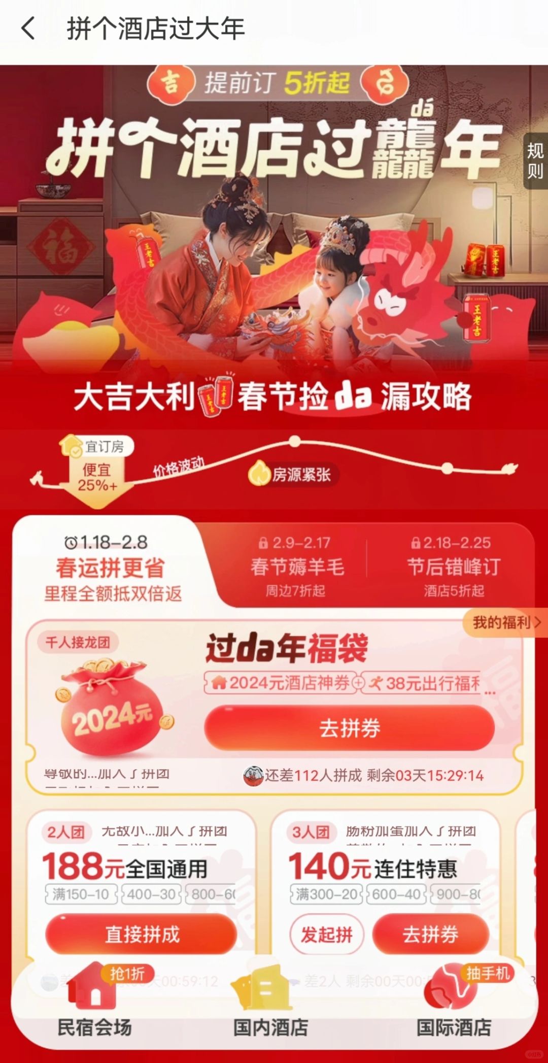 现在上同程xcx搜索“嗨住春节薅羊毛”