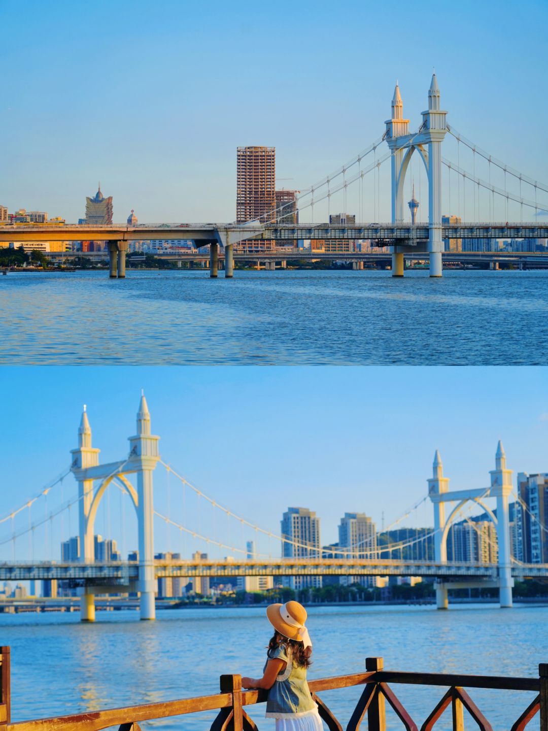 白石桥与澳门塔同框,欧式的哥特建筑风格,犹如置身于欧洲浪漫码头
