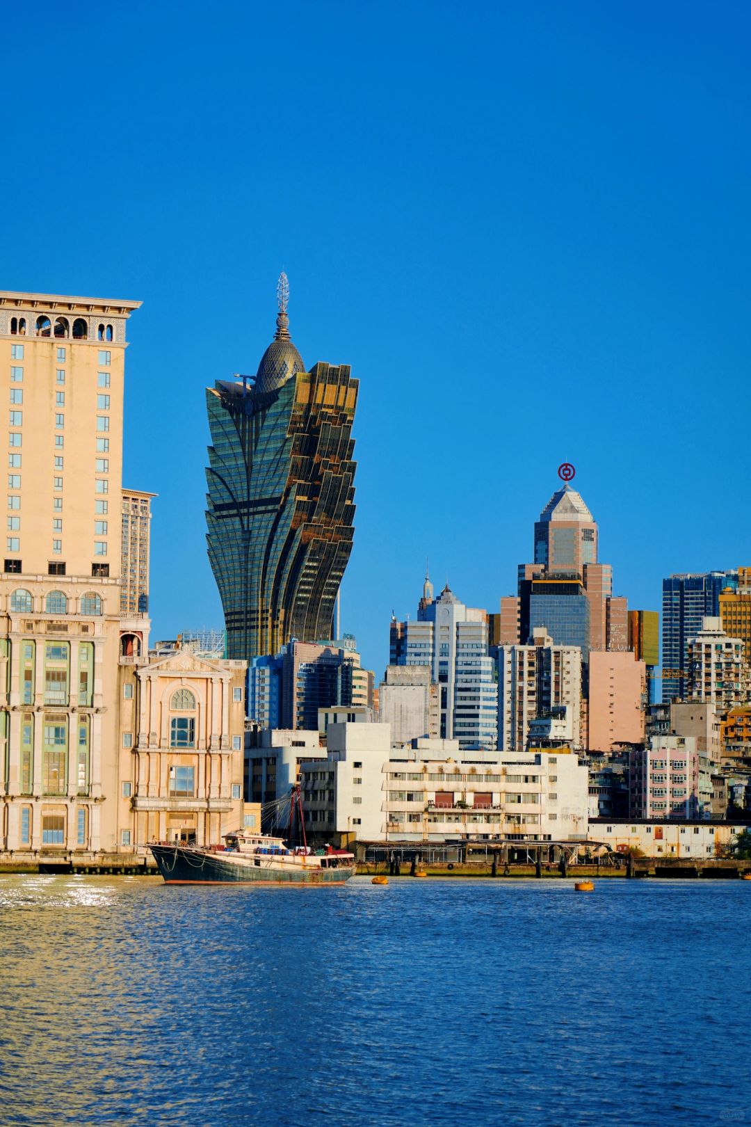与澳门一线海域相隔,码头轮渡与澳门民宅、地标建筑新葡京同框