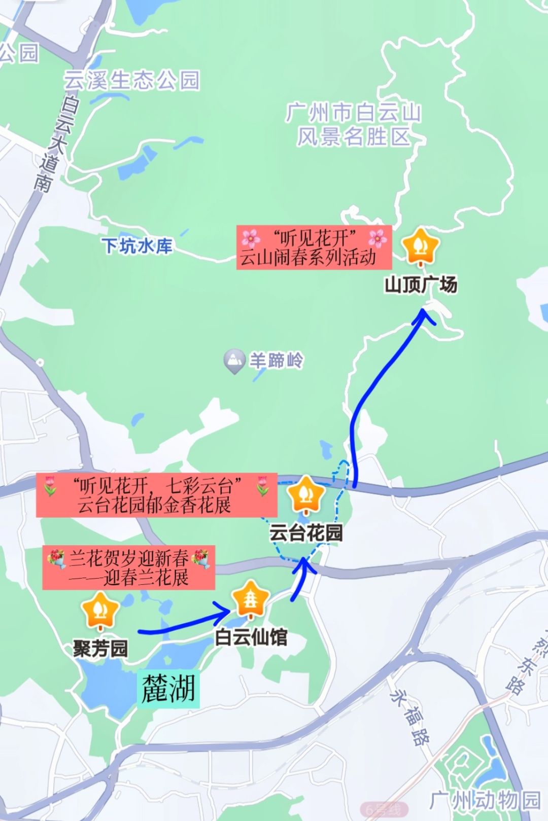 推荐路线:聚芳园➠ 麓湖➠ 云台花园➠ 白云山
