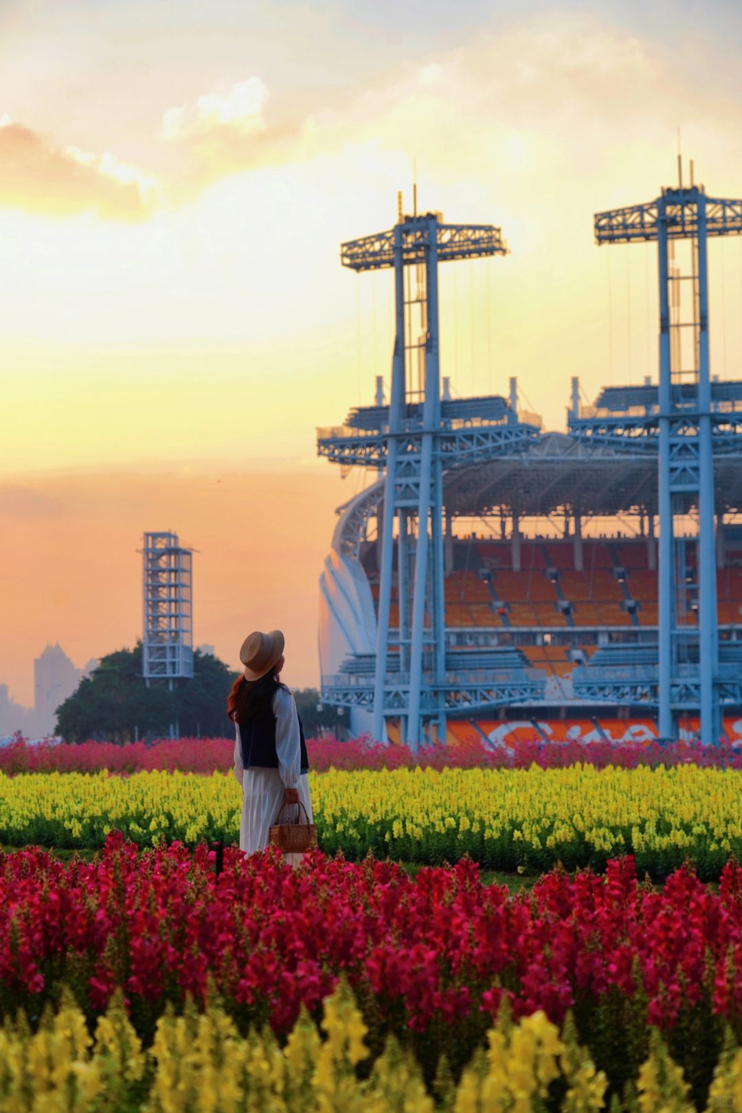 ✓海心沙:巨大的风帆好像一只船,最近种上了一大片金鱼草,晚上还有喷泉,更是浪漫无比