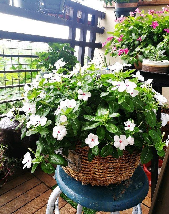 好养爱花开的草本植物,当选长春花,它又被称为四季梅、日日春,听名字就知道它是一种能四季开花的植物,北方地区,冬天移到室内养护,南方温习暖地区,室外养护,也能天天开花。 长春花很好养,只要光照充足,不施肥也能开花,若是再适当的施一些磷钾肥,它开出来的花朵,会更大,更娇艳,生长期间,多摘心打顶,就能不断的发分板,株型更饱满,开花就会更多,养好了,做出造型,很美很高档,虽然没有牡丹的雍容华贵,但是清新雅致的花叶,却有一种“小家碧玉”的温婉。