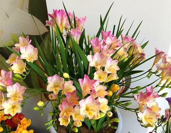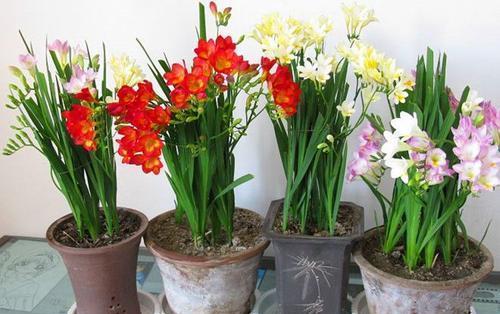 好养如“蒜苗”的香水花 香雪兰是一种球根类花卉,它的种球就像一个个的蒜瓣,很小巧,别看种球不大,却能开出艳丽的花朵,花香浓郁,色彩饱满,又美又仙。 香雪兰的颜色非常丰富,常见有的红、白、紫、蓝、鲜黄色、黄绿色、粉色、紫红色以及复色等,若是想让它开得素雅一些,建议一盆只种一个颜色,比如说白色,紫色,蓝色等等,有一种清新淡雅浪漫的美,若是想让它开得绚烂一些,就可以一盆种多个颜色,两个、三个、四个……甚至八九个,十多个颜色,怎么喜欢怎么种,让它盛开的时候,不同的颜色依次盛开,绚烂美丽,香气飘飘,又美又仙,有很高的观赏价值。 香雪兰的种球相对来说不贵,10多块钱就能买好几棵,能种一盆,种球就像一个个的大蒜瓣一样,我们栽种的时候,也可以像蒜瓣一样栽种,不过要注意两点,一就是用对土,加入适量的底肥,这两点做好了,才能收到事半功倍的效果,下面咱们就来详细的说一说。 需要注意的是,香雪兰天性喜温凉,最佳的栽种季节是春秋两季,秋天一般是10月左右,而春天一般是早春三月,不过若是冬天室温不会低于15度,也可以种植,养护得当,入春即可开花,从种植到开花,一般需要2-3个月的时间。