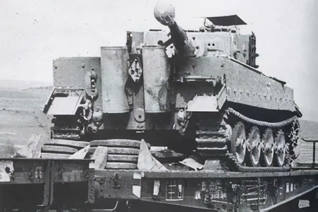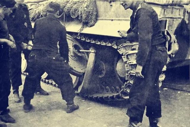 1944年,一辆刚刚抵达罗马尼亚的虎式坦克正在拆下运输用的专用履带,更换作战用的常规履带。 虎式坦克作为二战最让人胆寒的武器,拥有一门56倍径的88毫米坦克炮,正面最大装甲厚度更是达到了102毫米,采用的全是最好的镍合金钢装甲。这也一度让虎式坦克的重量在后期达到了57吨,所以为了增加坦克在泥泞路段的通过性,德国设计师设计的履带宽度达到了720毫米。 这样一来新的问题又出现了,那就是虎式坦克的车体在铁路运输中严重超宽,于是设计师又为虎式坦克设计了一种宽度只有520毫米的运输专用履带,要想换上这种履带,坦克外侧的负重轮必须被卸下来。 等运到目的地后全体车组人员必须相互配合,先拆卸运输履带,然后依次安装负重轮和常规履带,安装完毕后还要用曲轴调节从动轮的位置,以确保履带的松紧程度处于最佳状态。战斗还没有开始,车组成员就要进行一系列的高强度工作,不知道德军坦克兵在换履带的时候,心里面有没有吐槽设计师。
