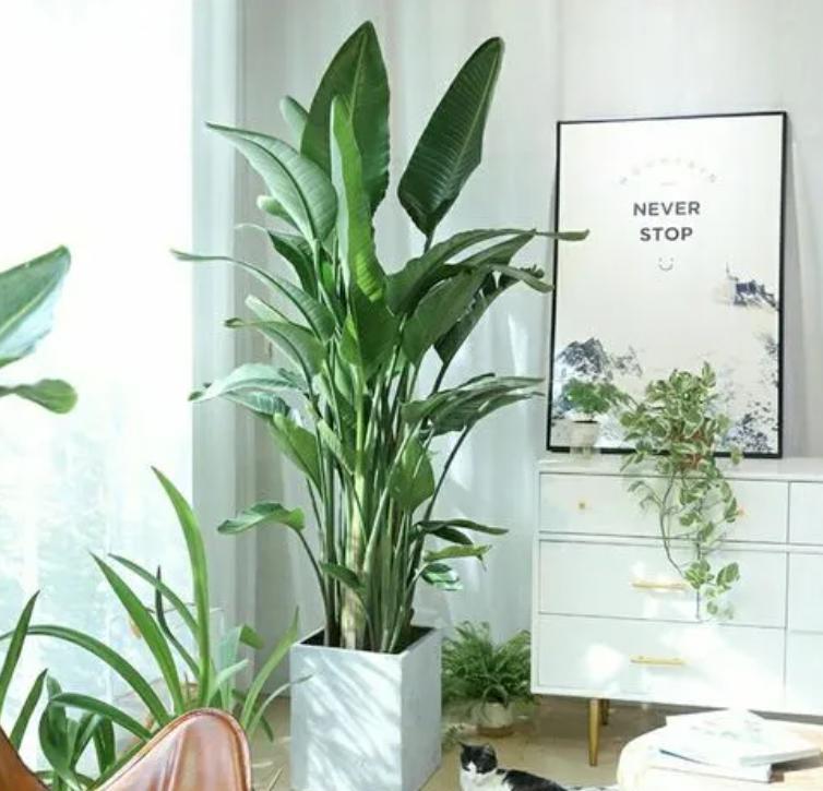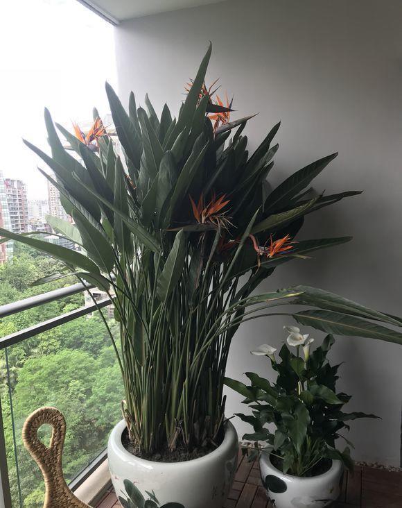 鹤望兰的叶片四季翠绿,叶大姿美,花型奇特 鹤望兰也叫天堂鸟,叶片翠绿,枝干挺拔,能长到一两米高, 大大的叶片像一个大蒲扇,看起来非常的大气有格调, 鹤望兰的叶片四季翠绿,叶大姿美,花型奇特, 犹如一只只飞翔的小鸟,这也是它名字的由来, 南方地区,很多人家把它丛植于庭院的一角,郁郁葱葱,十分雅致。 一般情况下,鹤望兰都是盆栽养护,鹤望兰的根系特别发达, [加油]建议大家在栽种的时候,用一个稍大的花盆, 种好之后,放在光线明亮通风好的地方, 土壤三四成干浇一次透水,一个月施1-2次氮磷钾肥复合肥,就能生长得很茂盛, 一般情况下,室外养的鹤望兰,长到一定的年限, 就能开花, 具备开花能力的鹤望兰,9-10天就可以增施磷钾肥, 可以用磷酸二氢钾兑成1:1000,直接灌根,能促进它多长花箭多开花。 需要注意的是,现在花市上有很多的出售鹤望兰小苗的,也开出艳丽的花朵, 遇见这种情况,要仔细甄别,大多数花朵都是塑料的防真花,我就上过一次当。