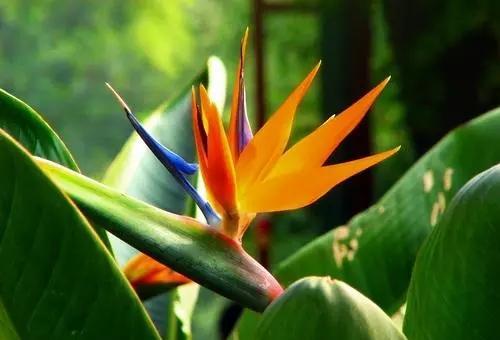 鹤望兰的叶片四季翠绿,叶大姿美,花型奇特 鹤望兰也叫天堂鸟,叶片翠