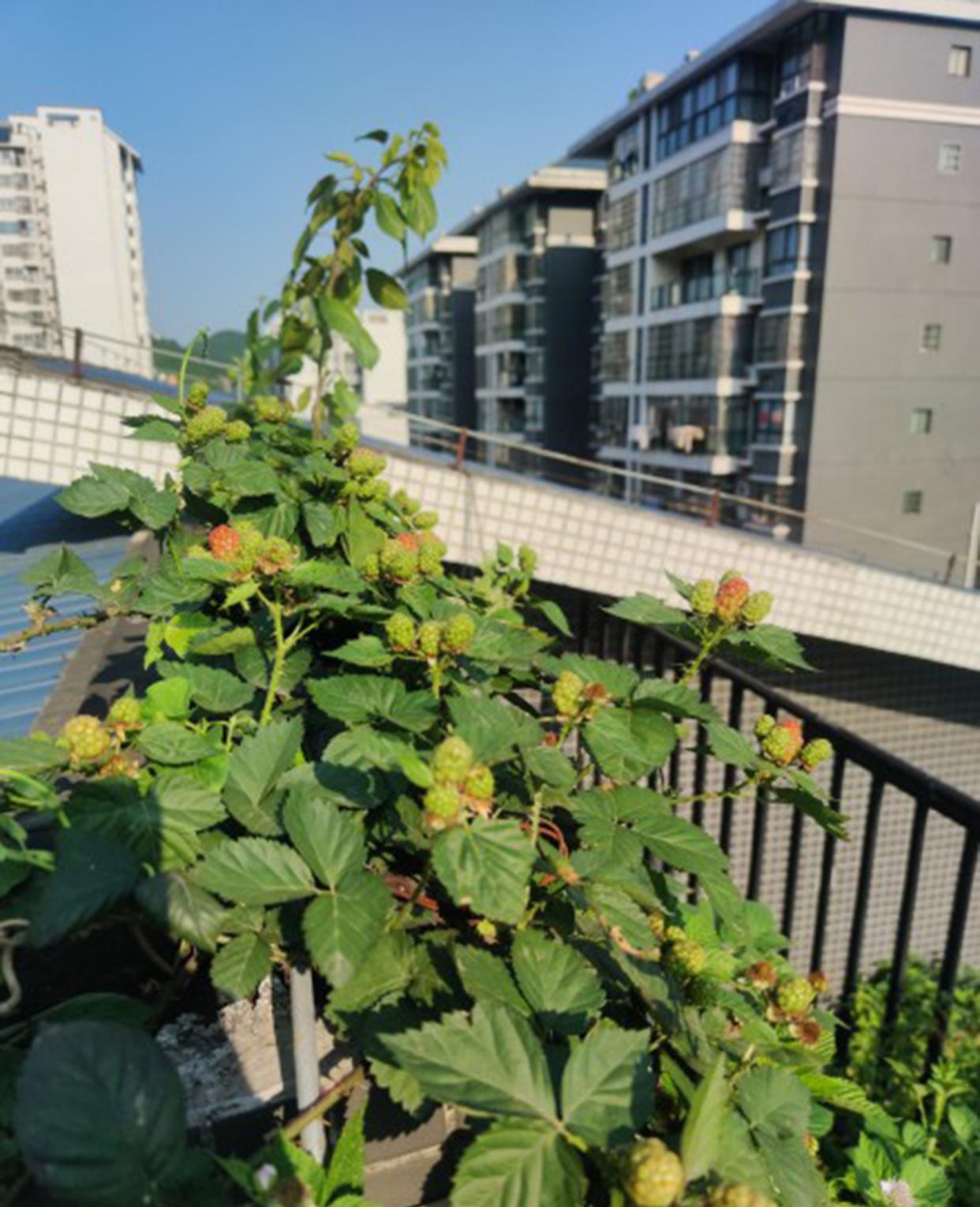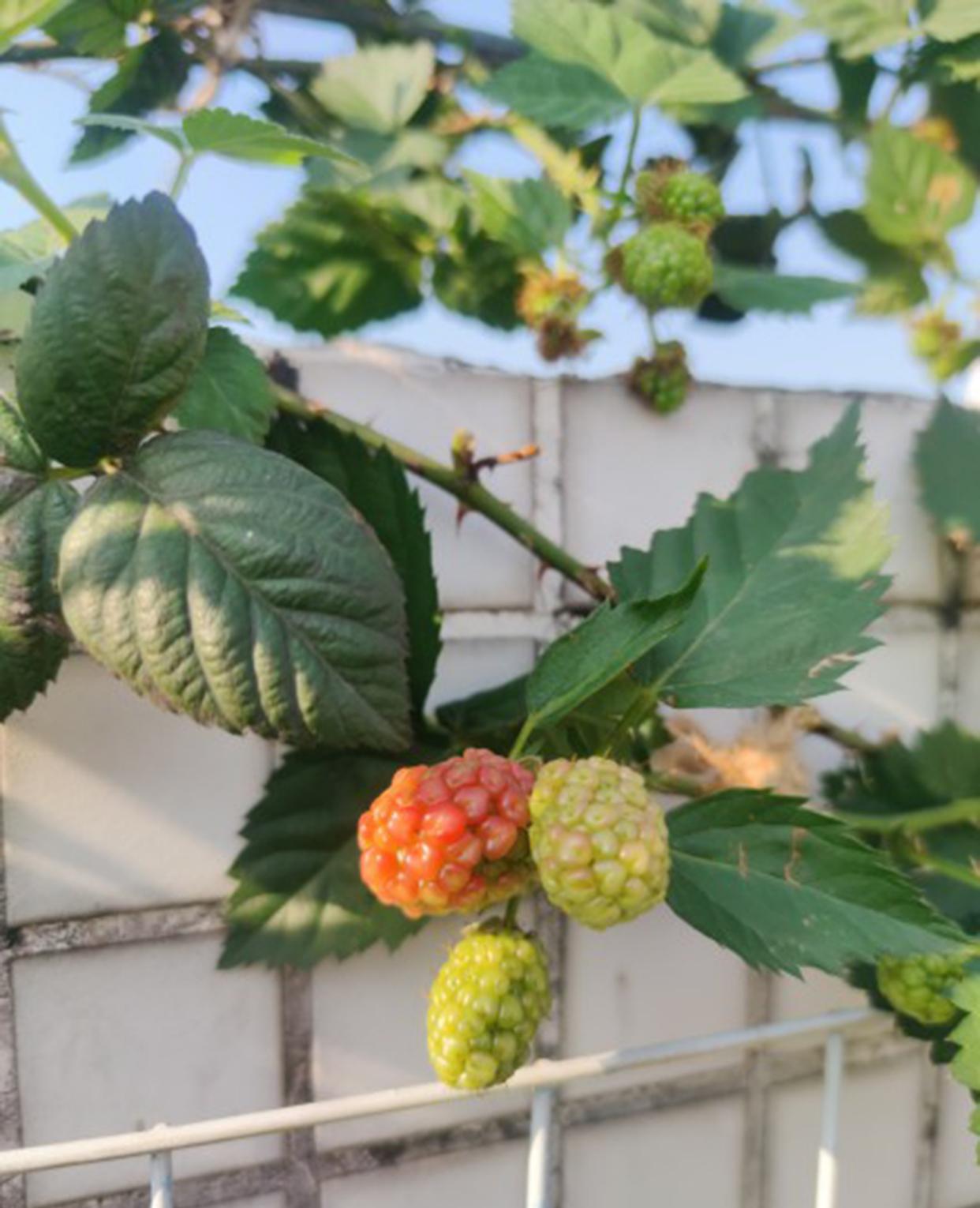 黑莓开始变红了哦[馋嘴][馋嘴],长势太狂野了,得早晚都要浇水,盆栽的硬伤[摊手