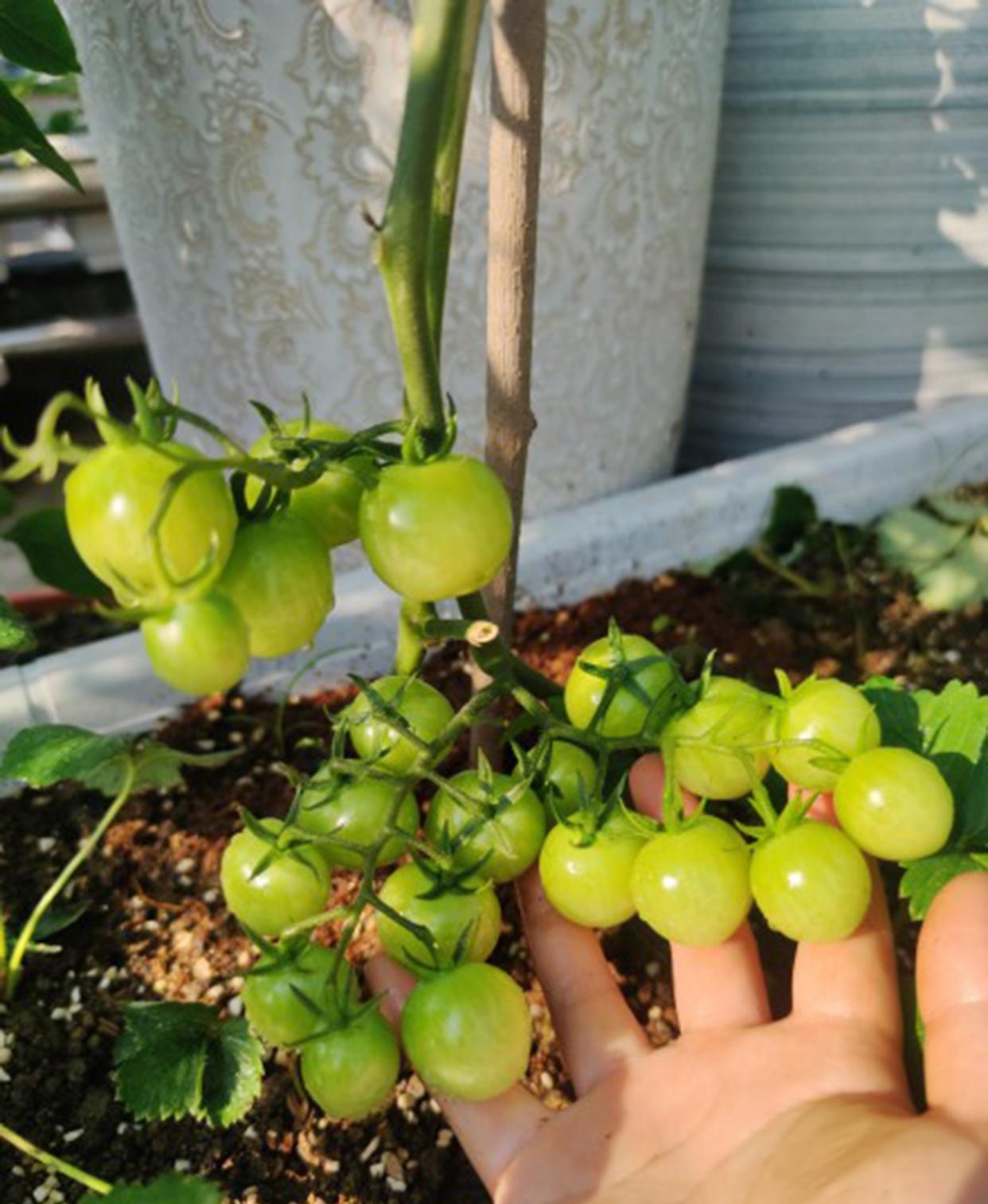 黑莓开始变红了哦[馋嘴][馋嘴],长势太狂野了,得早晚都要浇水,盆栽的硬伤[摊手] 图6这串番茄的光泽度可以媲美阳光玫瑰🍇了。