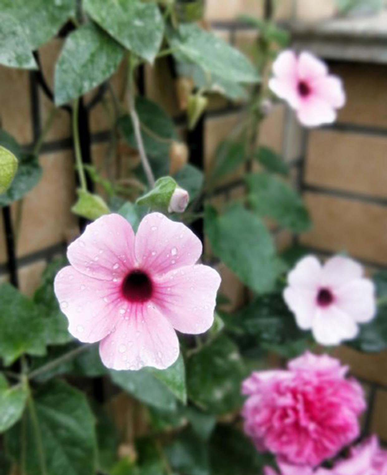 黑眼苏珊,作为院子里的配角,很是称职。不用打顶,不断萌生枝条扩大领地,尽情表演。