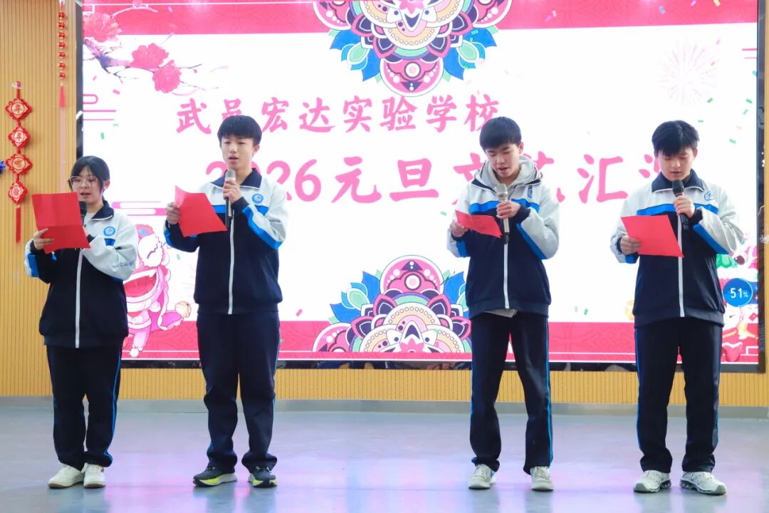 汇演伊始,学校领导联袂登台,向全体师生献上了饱含深情与期许的新年致辞,为晚会注入了庄重而温暖的灵魂。致辞深情回顾了共同走过的2025年同心筑梦、共谱华章的难忘旅程,并勉励全体师生在宏达实验这个和谐的集体里,继续唱响奋进的旋律。新征程,再出发,步履铿锵,让每一个明天,都比昨天更亮!