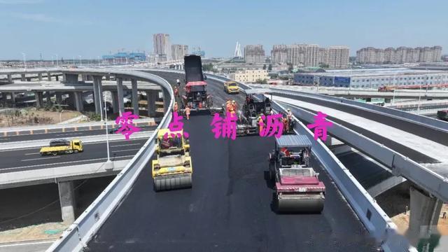 零点项目路面摊铺总面积约24.25万平,累计使用沥青混合料约6.78万吨。面对时间紧迫、桥梁曲线复杂多变等难题,项目团队科学规划摊铺方案,采用先进的沥青摊铺技术和设备,严格控制沥青温度、摊铺厚度和压实度,确保各施工环节精准推进。同时,项目团队始终坚持绿色建造理念,针对春季多风天气,采取了一系列有效的扬尘防控措施,强化环保施工管控,实现质量与环保双优目标。