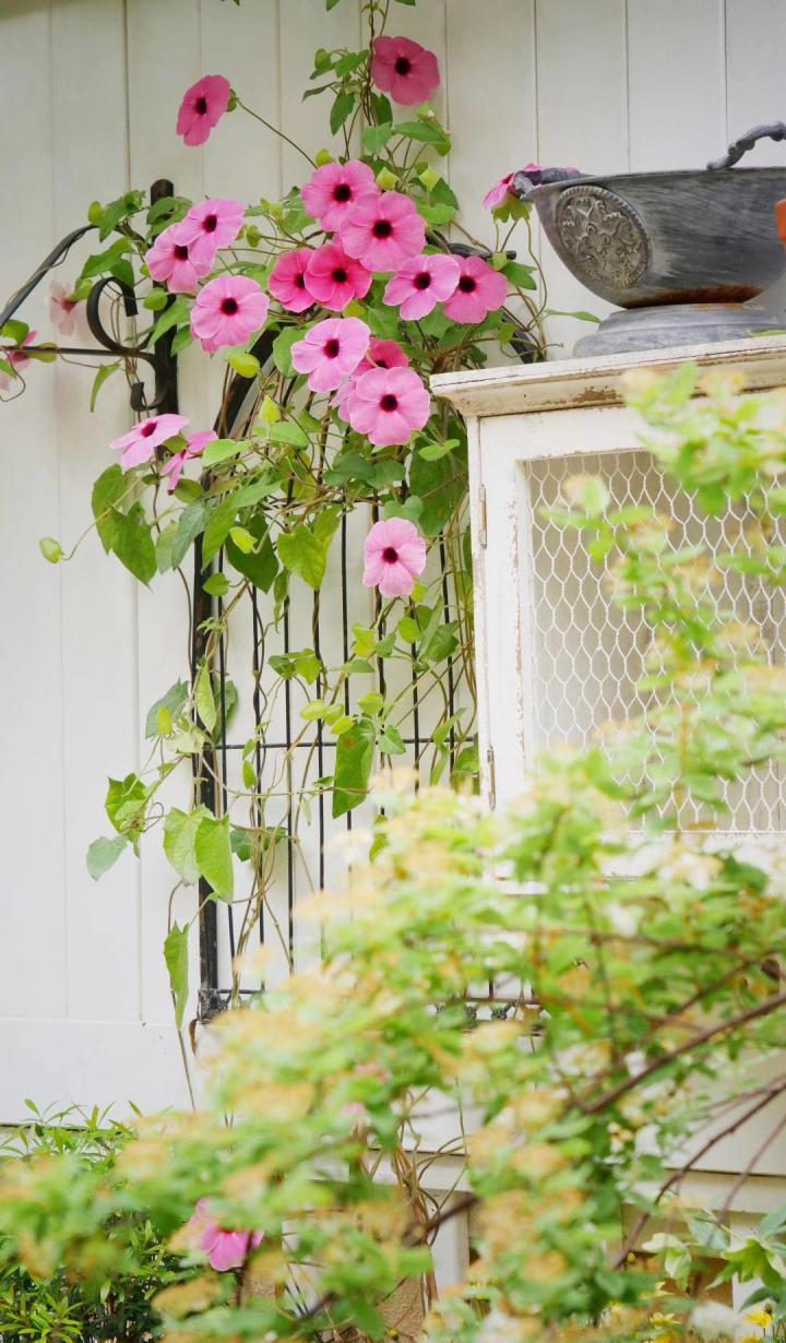 黑眼苏珊得名于她著名的黑色花心,自从看到她那明媚的眼眸,就恋恋不忘,长长的爬蔓,秀美的叶子,圆圆的五瓣花,那种让人一见不忘的美丽。今年流行这种爬藤花,美观又好养,忽闪着大黑眼睛萌萌哒,只要种一棵就能收获一面花墙!就是冬天要注意防寒噢…