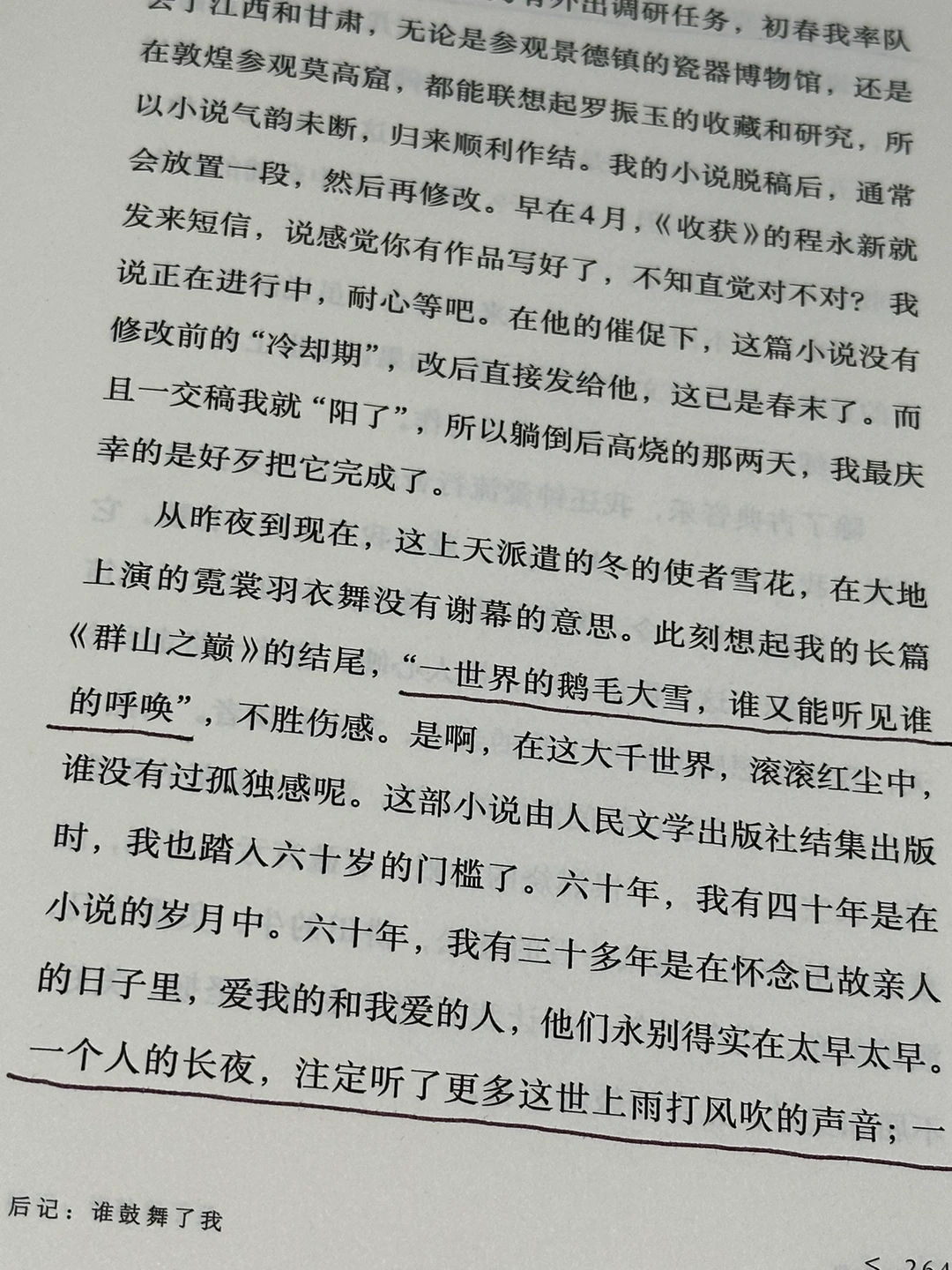 ✨特别喜欢这段对迟子建的评价:“迟子建大概是许多读书人想娶的女人。表面是白月光,内里是白米饭,安安静静的实力派。她的文字就像她的人,一眼望去,老实,不花哨,望得穿,给人莫名的踏实感。北极村里的女作家,在文学土地上一耕就是几十年。没有王安忆的身世,李碧华的奇才,严歌苓的绝名,却也在文学当代史上,留下坚实的一笔。”