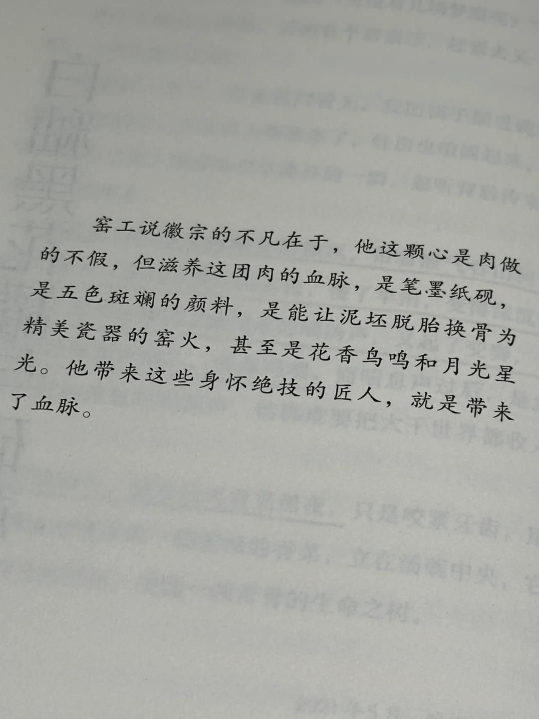 以徽钦二帝在黑龙江五国城被囚的岁月为切入点,展开了一段亦真亦幻的穿越之旅。故事中有两件叙事“助推器”,一个是白釉黑花罐,一个是碑桥,前者是根据史料虚构,后者则源于作者参观五国城遗址时看到的一块碑。她将它们放在那些对徽宗来说风雨如晦的日子,小说的人物因此复活。