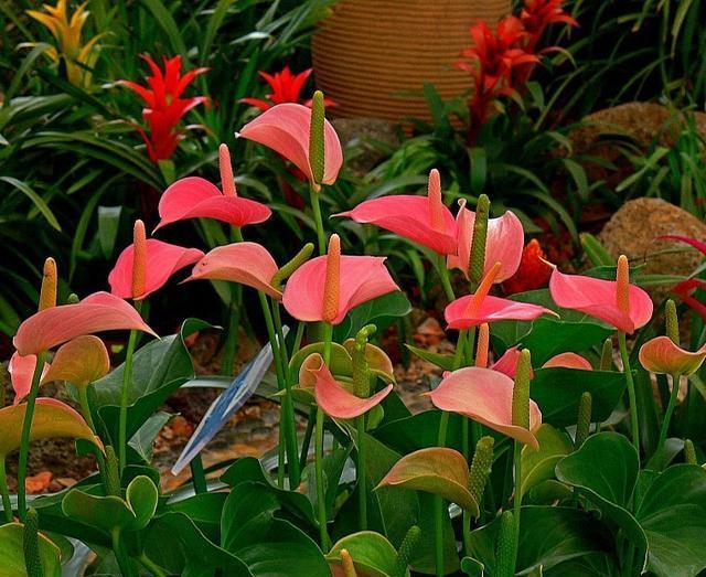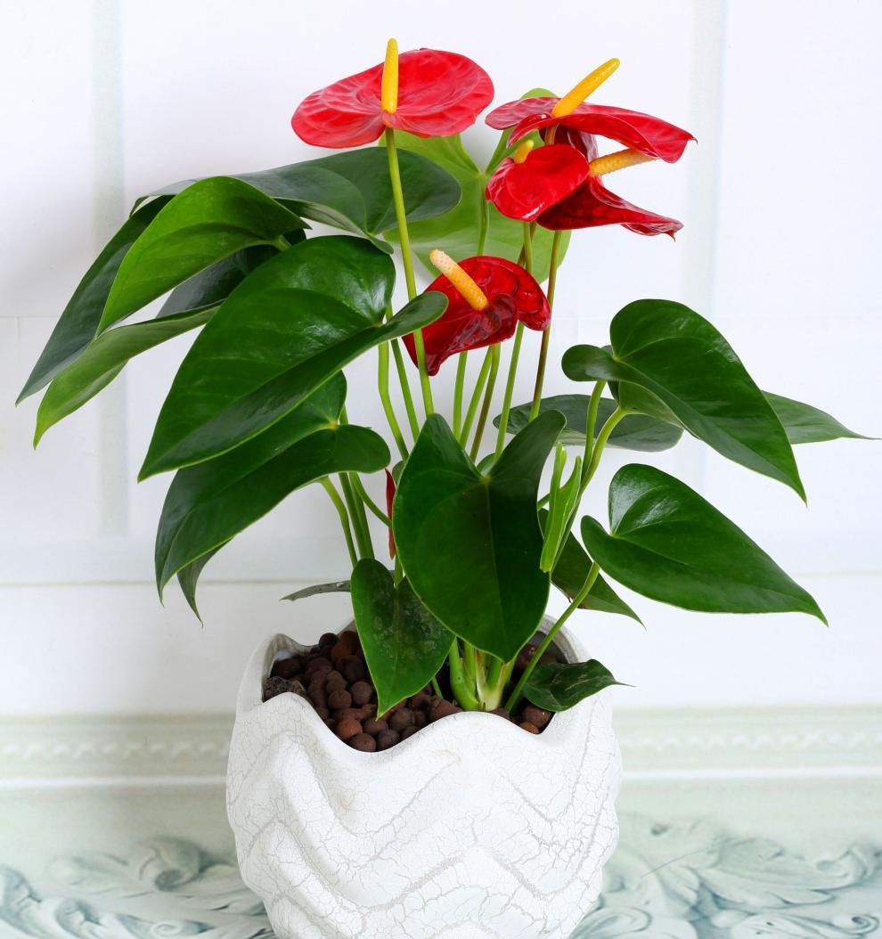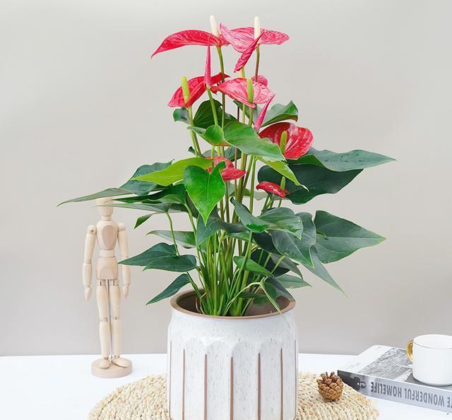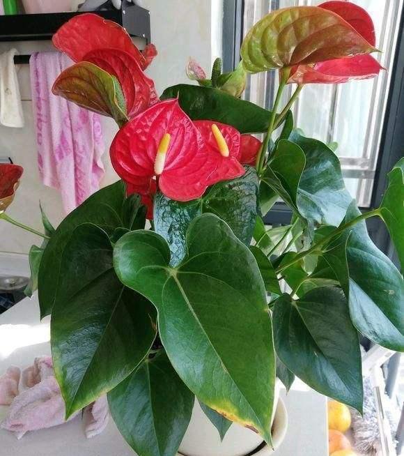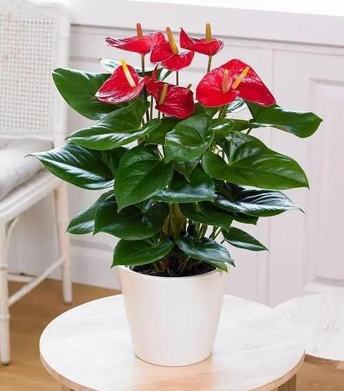 红掌的花朵娇艳喜庆 红掌是单叶子植物料天南星科花烛属的多年生草本植物, 一年四季都能开花,且单次花期长达一两个月。 并且对光照的要求不高,有点散光就能健壮生长,十分适合养在室内。 且红掌的花朵娇艳喜庆,还有一个黄色的花蕊,看起来就像一个个燃烧的火烛, 所以它还有一个名字,叫火烛,因为它的叶片是心心绿色的,花朵是红色的, 经久不衰,有着“红红火火、一心一意”的美好寓意,且它的株型小巧, 家里养一盆,适合点缀窗台、案几,不管放在客厅卧室都合适。 居家养红掌一定要注意,不能暴晒,放在散光通风处, 就能长得茂盛,爱开花,相对来说红掌很好养, 稍加养护就能不断的开花,十分适合新手。
