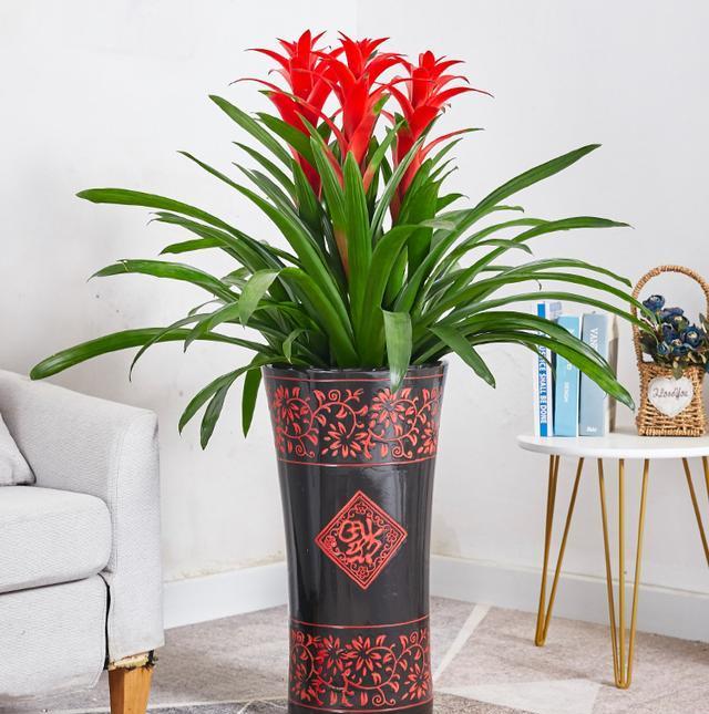 鸿运当头,吉祥大气,十分适合养家里 鸿运当头是凤梨科的多年生草本植物, 叶片修长飘逸,花朵开于枝条的顶端, 红彤彤的十分喜庆,而且它一茬花可以持续开六七个月, 好养易活,观花期长,十分适合养室内。 鸿运当头,吉祥大气,十分适合养家里, 平时养护也简单,放在光线明亮的地方, 土壤干了就浇一次水,一个月施一两次磷钾肥,能让它的开得更持久。