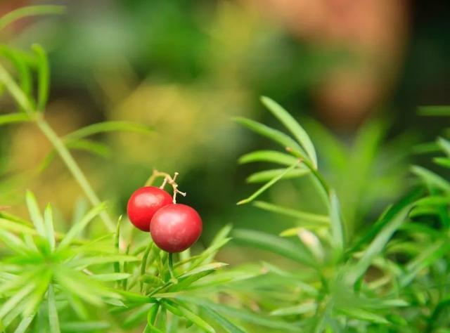 狐尾天门冬名字的由来,自然也是不言而喻,它叶型饱满,像极了柔软蓬松的狐尾。一种比较小众的植物,可能很多人对它还有些陌生。但是,它的亲戚文竹(Asparagussetaceus),却是像绿萝一样,几乎无人不知,甚至每家每户都种过。看起来似乎有些矫情的狐尾天门冬,其实也并不难养。采一支挂果的枝条,晾成干花,一定很有秋日的野趣~