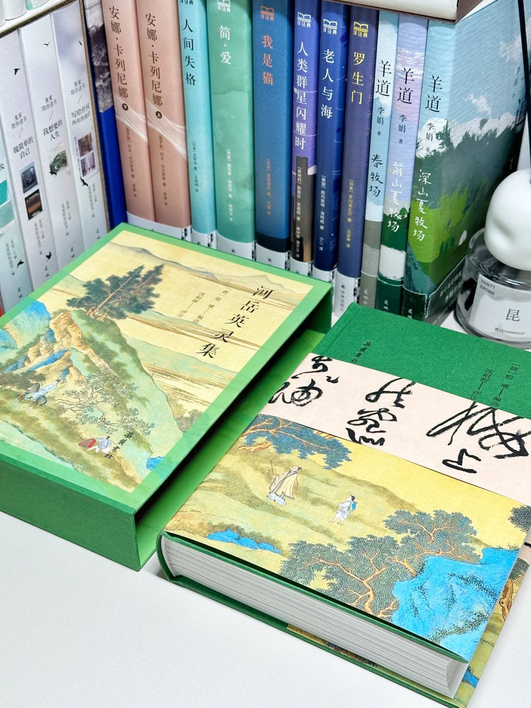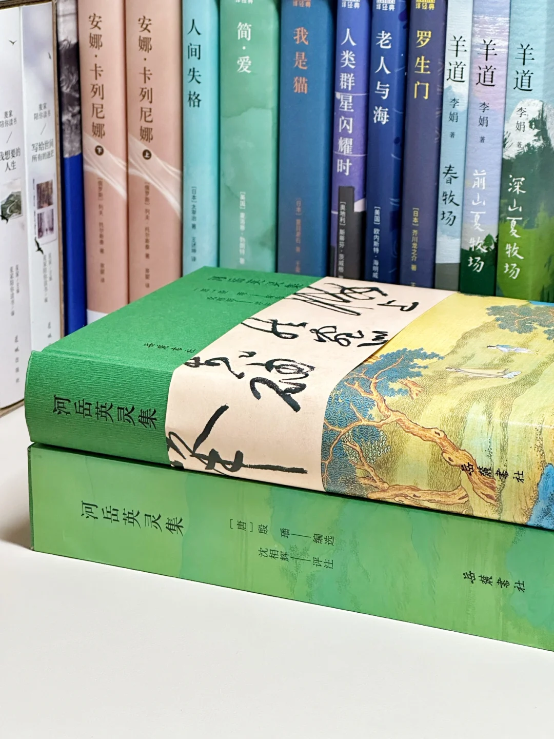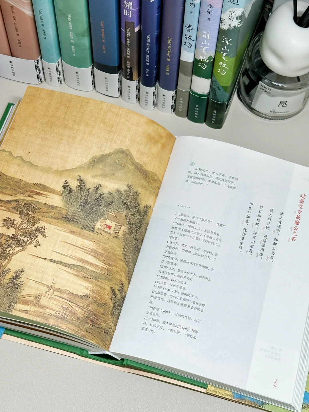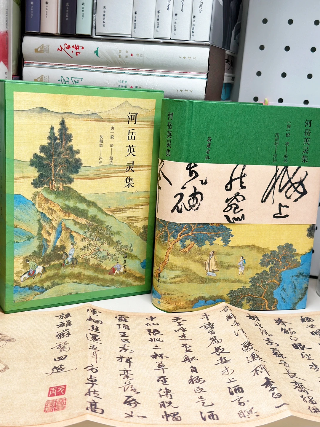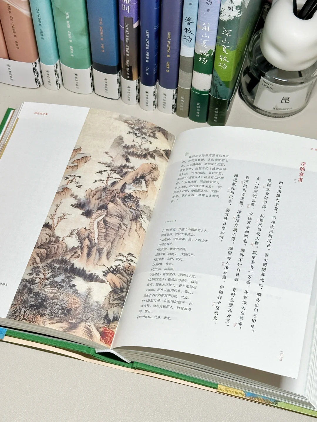 作为一个十足的“外貌协会”,这套岳麓书社的《河岳英灵集》实在是长在了我的审美点上,全本全注全评全彩图,硬壳外装配以只此青绿的大气国画,见到它的第一眼,只觉得用再美好的词汇来形容它都不为过。