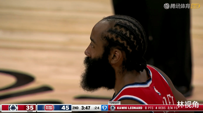 第三节开始,快船打出一波7-0的小高潮,瞬间缩小分差并打停活塞,哈登命中一记三分,状态有回暖趋势。