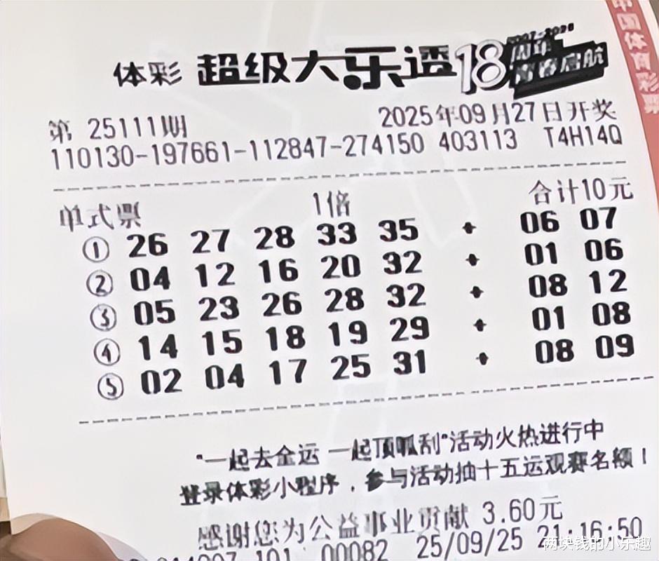 大家好,今天是9月27日,星期六,今晚大乐透25111期就要开奖了,近期开奖一直很平稳,所以奖池已经累积到了12亿,现在距国庆节休市仅剩最后两期了,因此不少彩友都迫不及待的早早出票,想与奖池擦出一些火花,下面请大家开始欣赏: