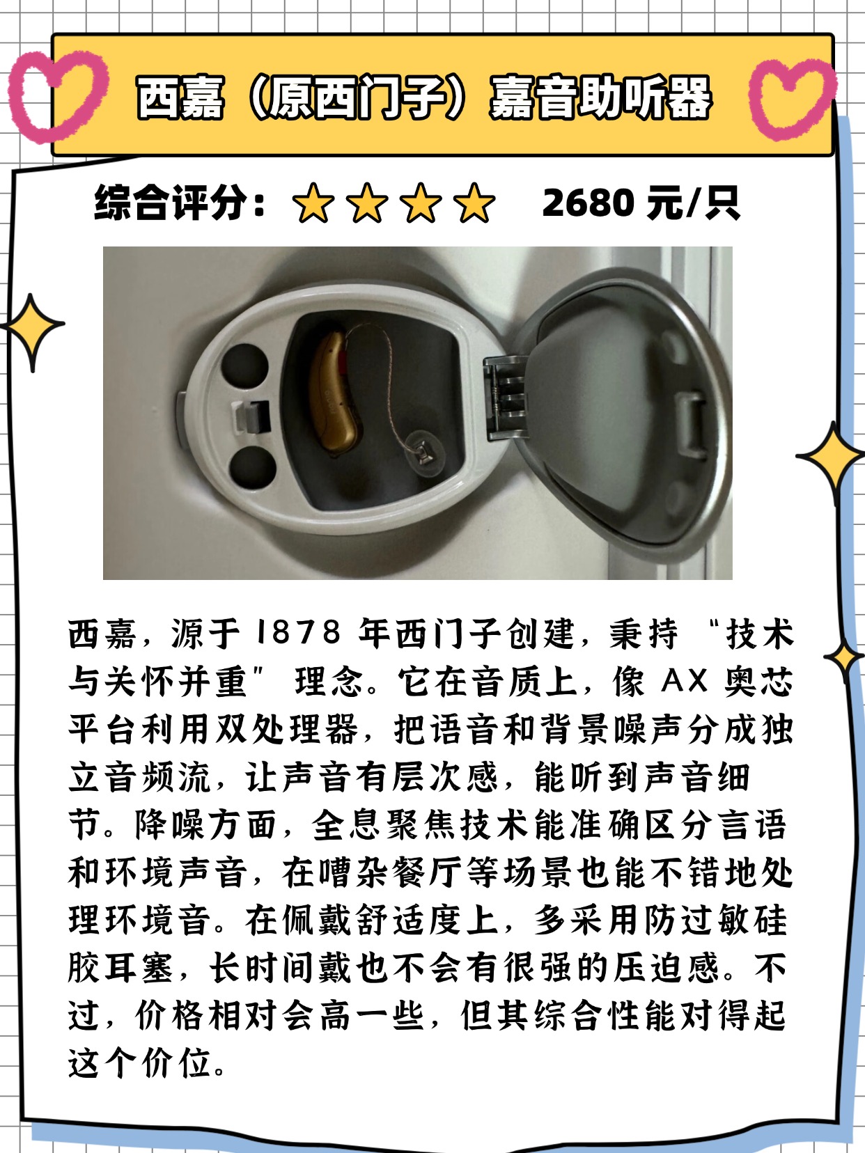 西嘉助听器的优势在于它们的佩戴舒适度和音质表现,很多使用者反馈,西嘉的助听器比较适合那些轻度到中度的听力损失者。不过,它的缺点也很明显,尤其是价格相对较高,对于预算有限的消费者可能不太友好。在选购助听器时,大家常常会纠结一个问题,那就是:贵的助听器就一定好吗?其实未必。助听器的好坏并不完全由价格决定,最重要的是要根据自己的听力需求和生活环境来选购。有的人可能只需要在家里和家人沟通,简单的助听器就足够;而有些人可能需要更强的降噪功能和更多的调节选项,这时就需要选择一些功能更全、价格也稍高的品牌。在选购时,最好先做个听力测试,了解自己的听力损失程度,再根据需求选择合适的产品。