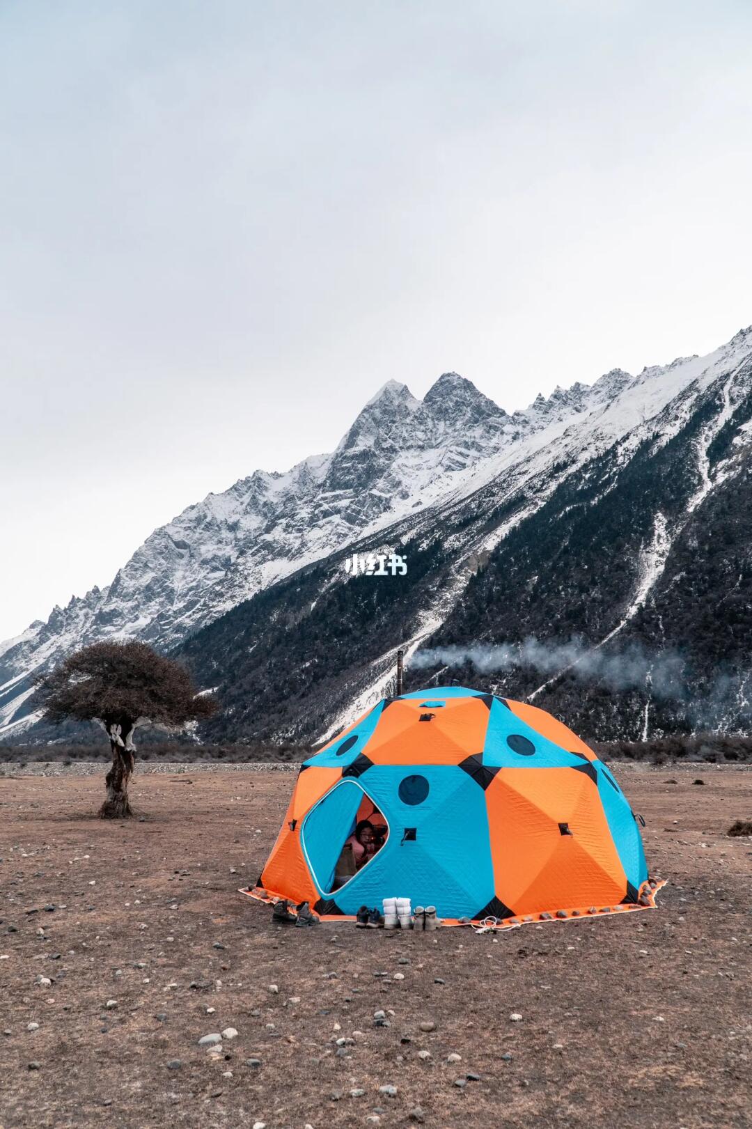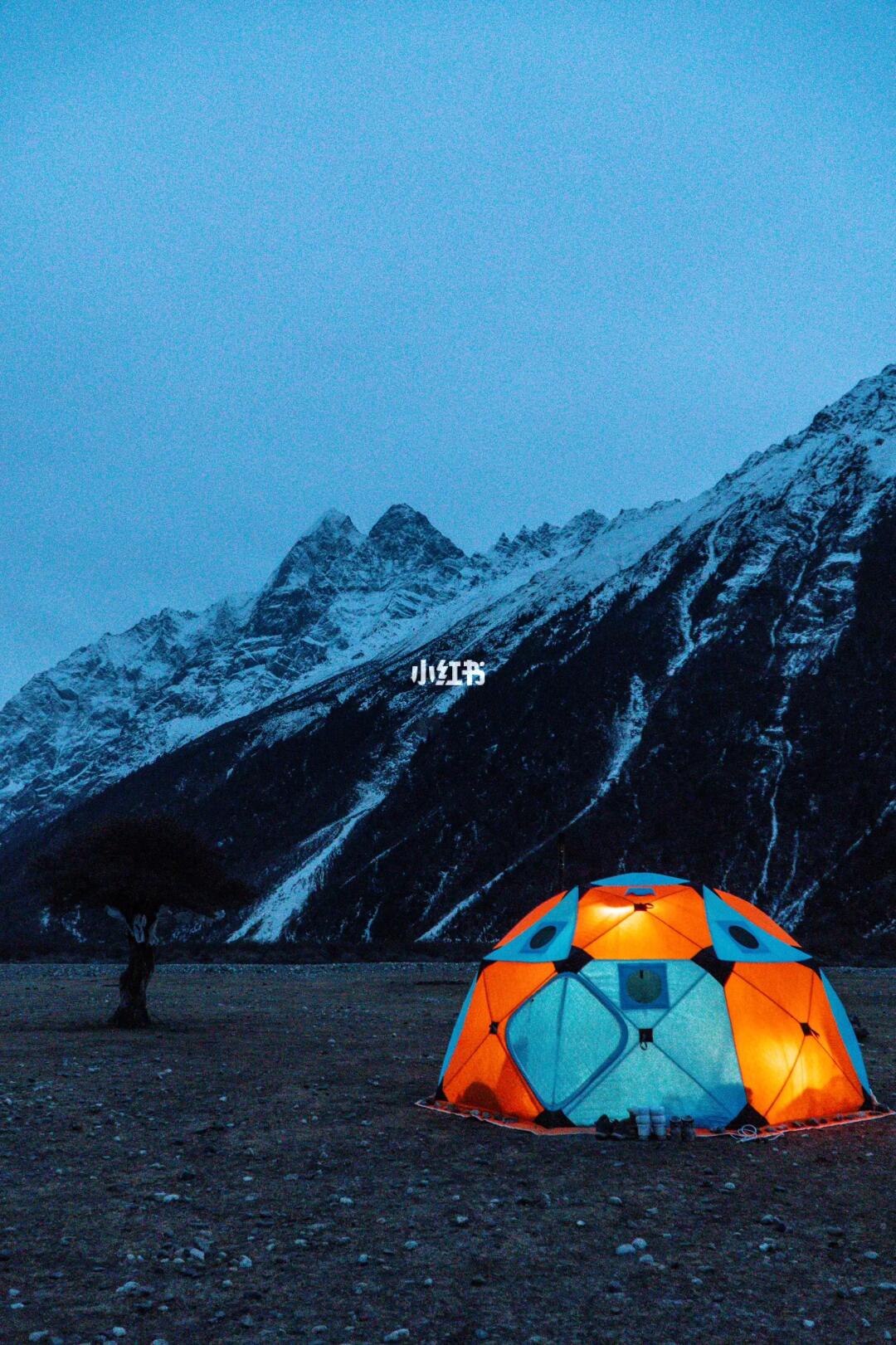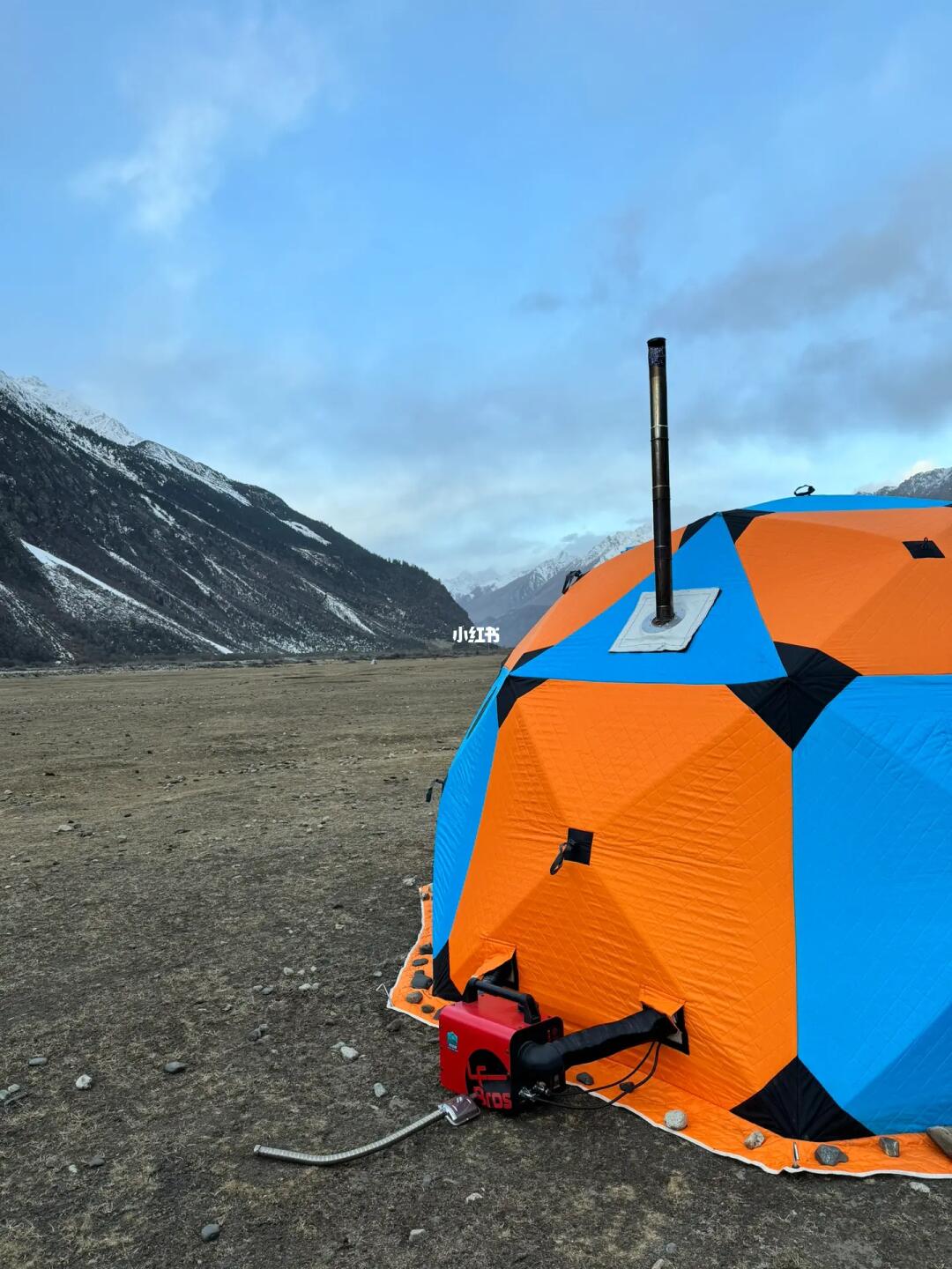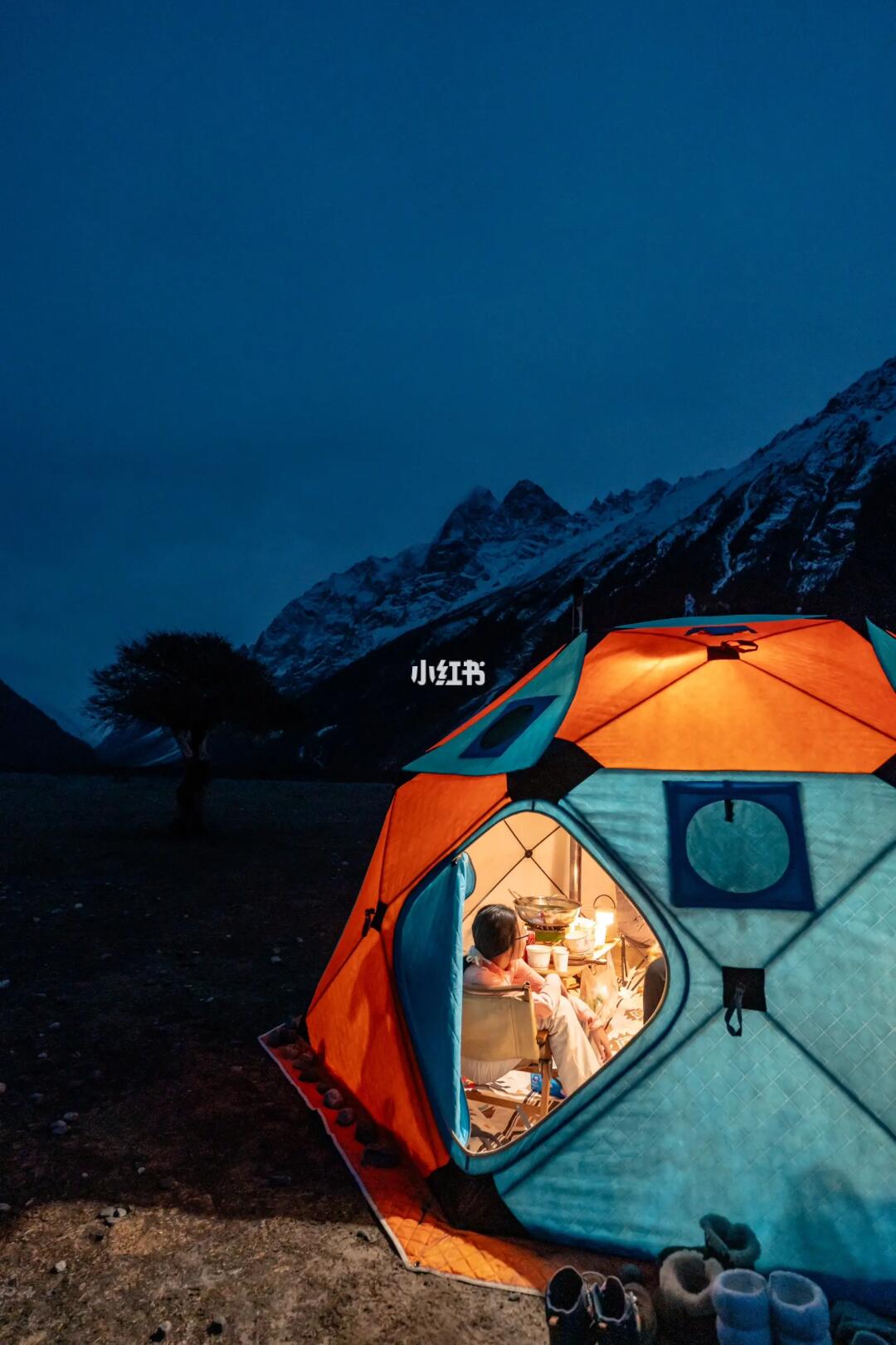 在雪山下野奢露营,柴火炉和柴暖更配。 夜晚零下9-15度 ,帐篷内一直保持20+温度 这在雪山下有一股温暖的感觉太爽了 图5:柴暖